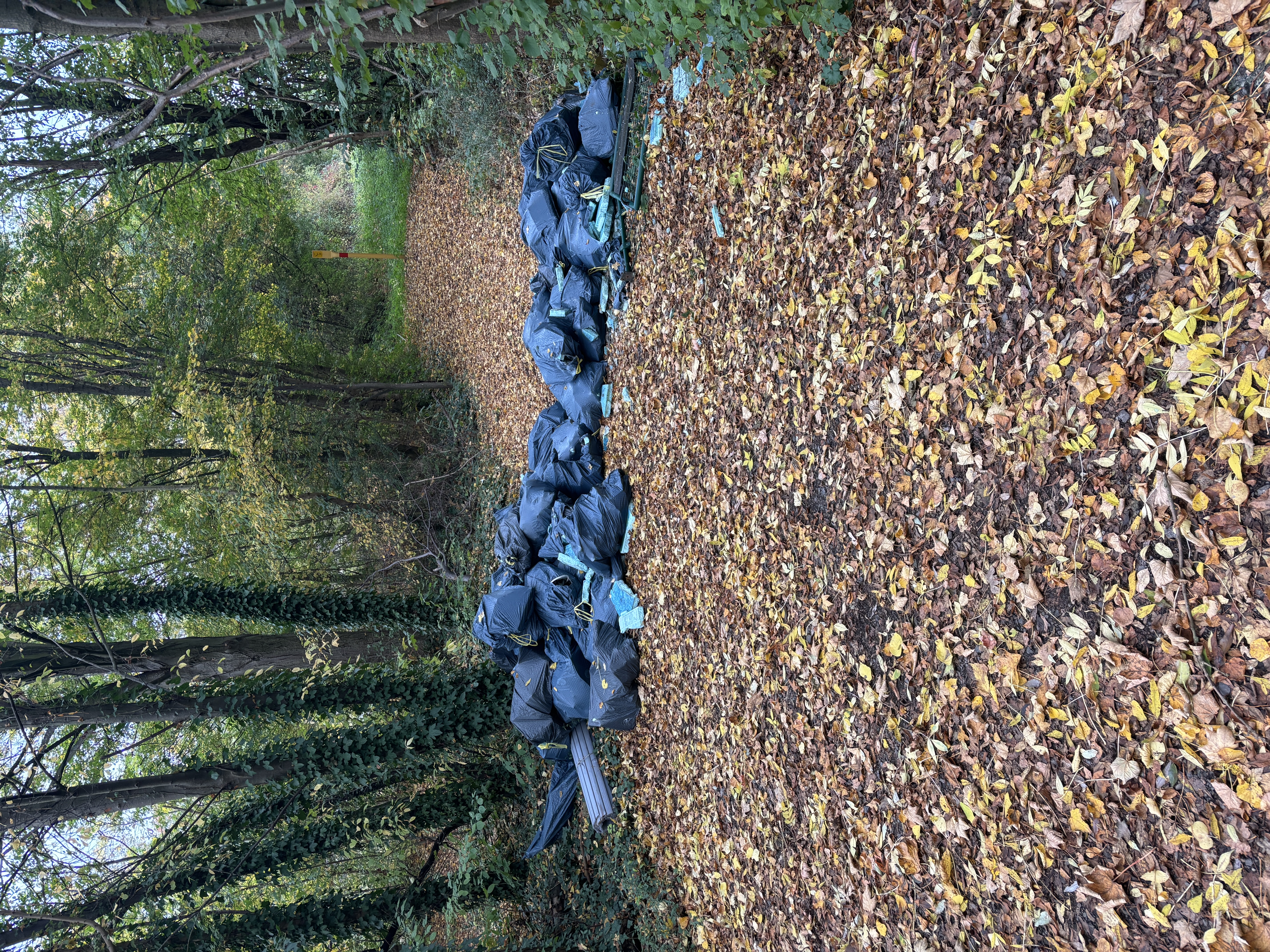 Am Grünen Kuhweg von Flittard to Dünnwald liegt im Wald hinter der 1. Eisenbahnbrücke im Kurvenbereich sowohl links als auch rechts der Straße säckeweise Dämmmaterial. Leider kann ich den genauen Ort im Kartenausschnitt nicht markieren, da die Karte weder über mein Mobiltelefon noch über den Rechner angezeigt wird!