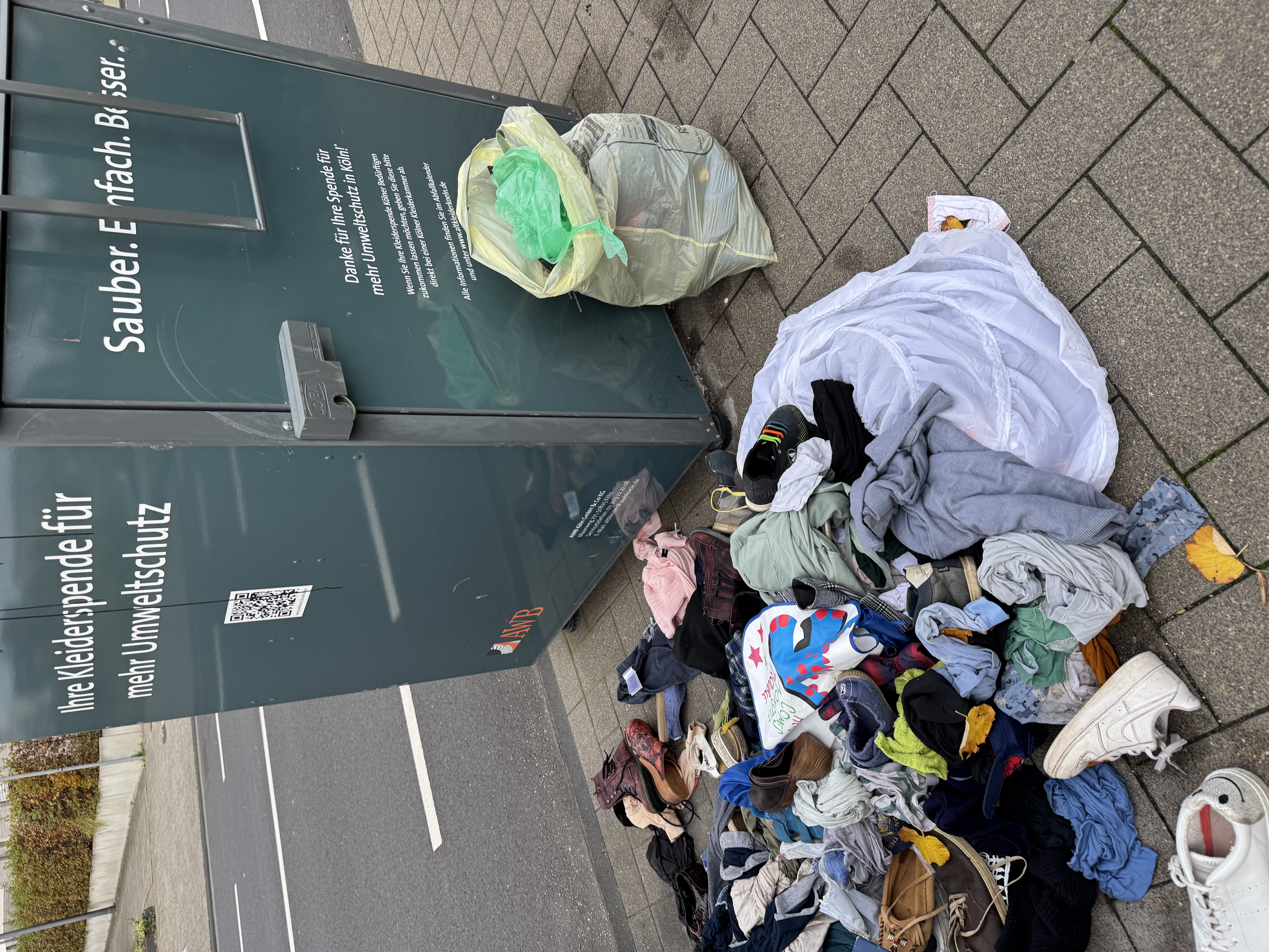 Es werden immer wieder Kleidersäcke aus dem Container genommen und auseinander gerupft