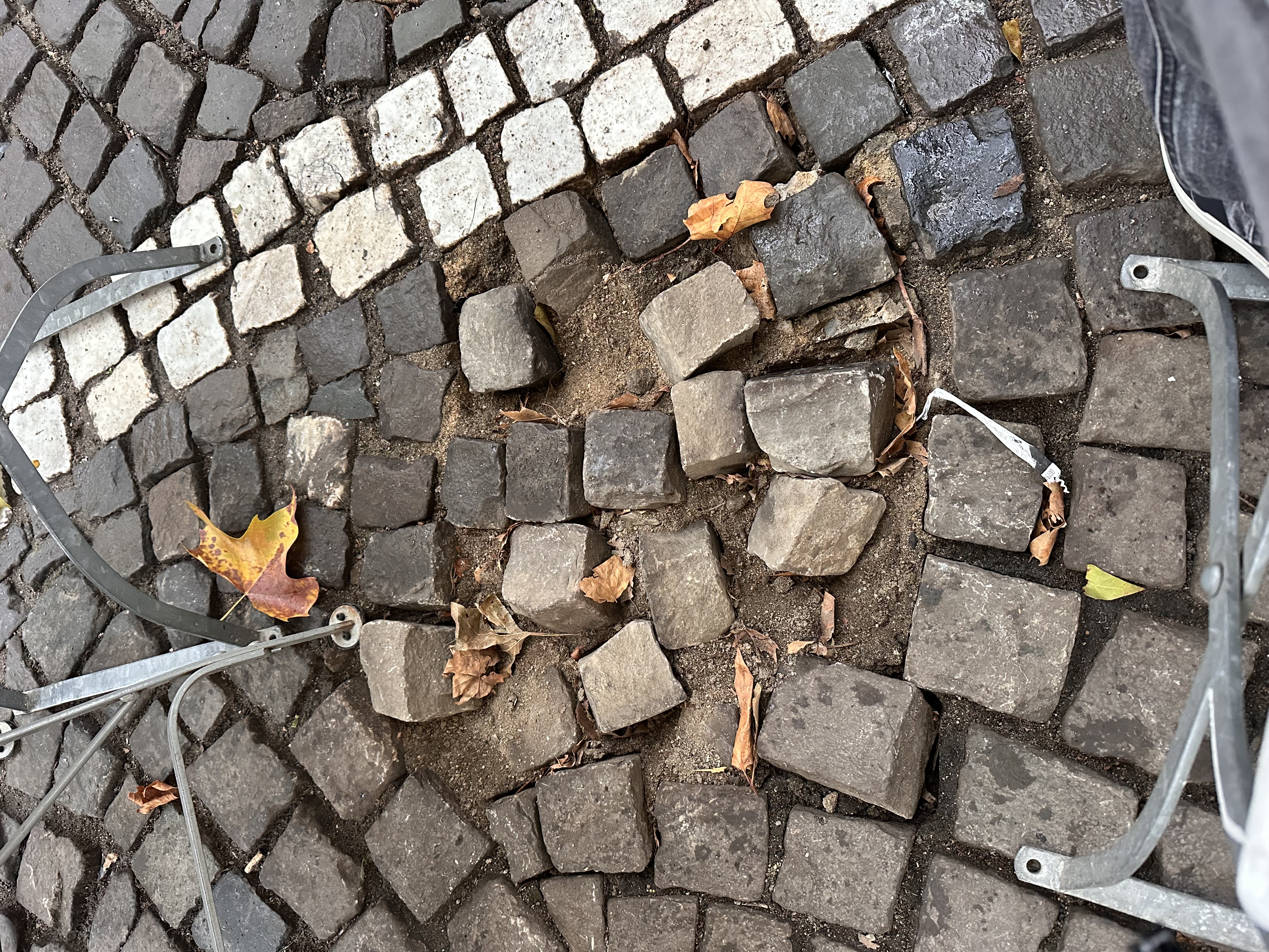 Stolpersteine.sehr gefährlich.Eine alte Dame ist ausgerutscht
