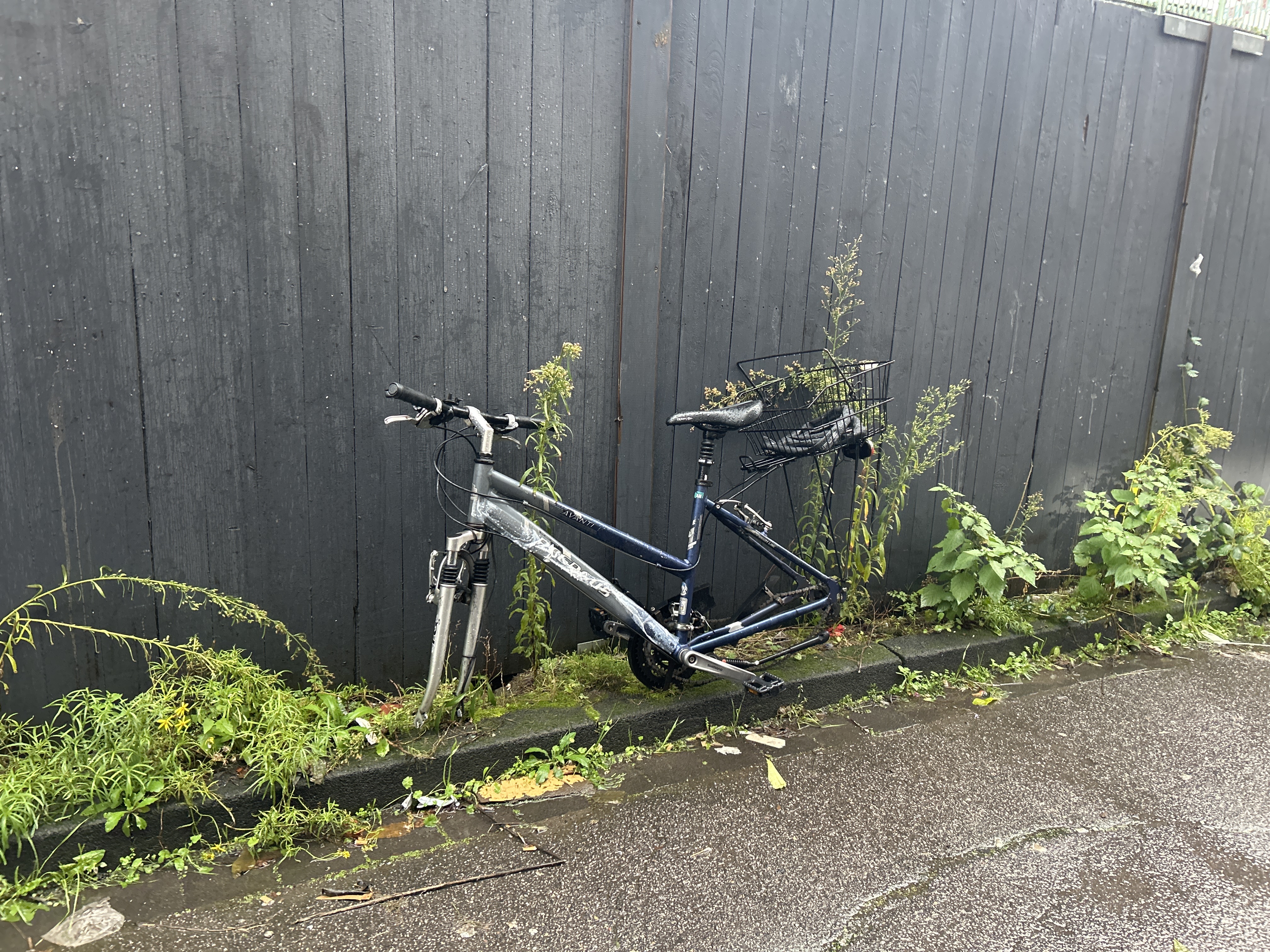 In der Biegerstraße gegenüber Hausnummer 9 in Köln Mühlheim (PLZ 51063) wurde ein Schrott-Fahrrad (ohne Reifen) wild abgestellt.