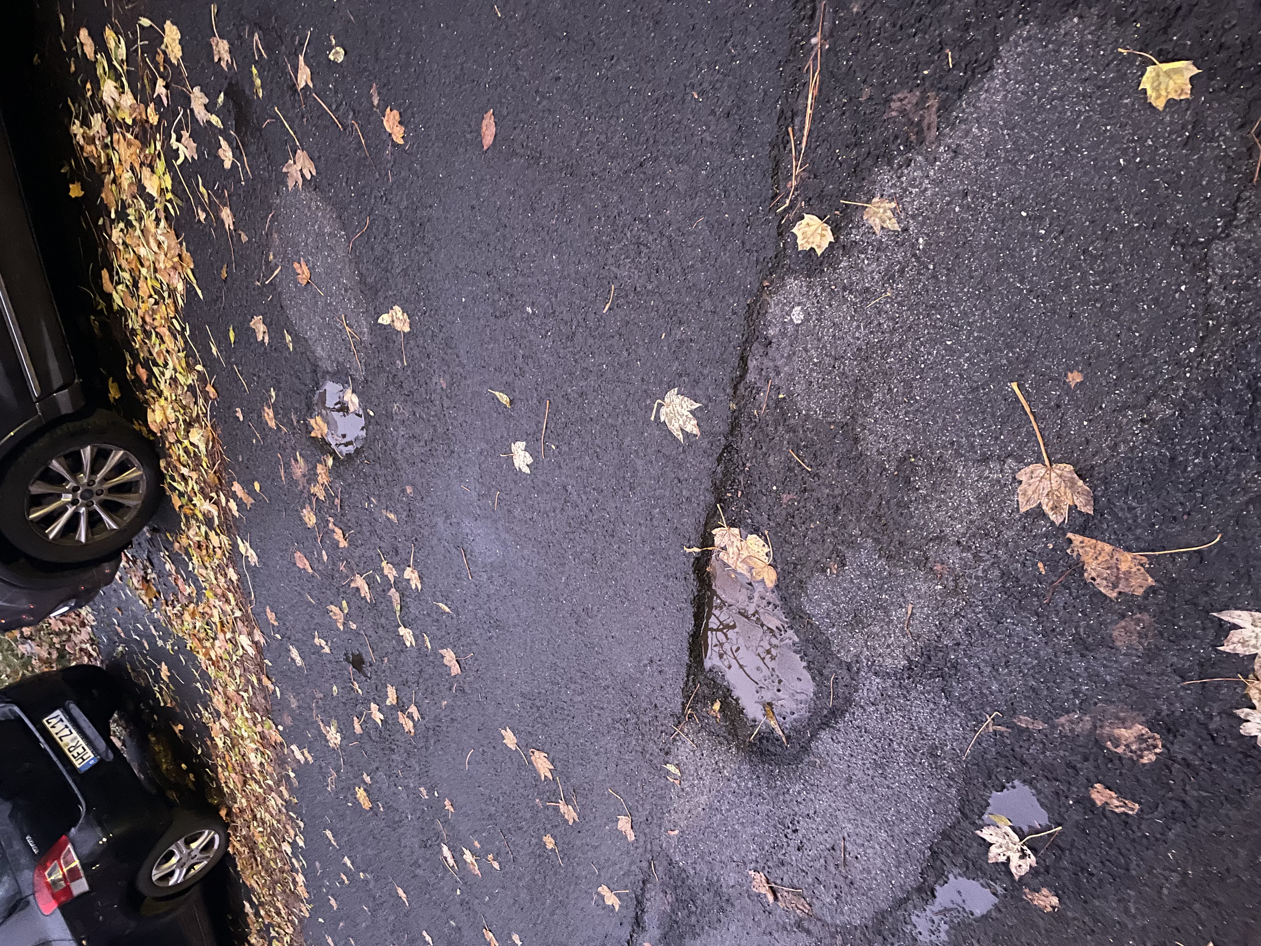 Diverse Schlaglöcher mit Gefahr für Unfälle und Schäden an Autos sowie Fahrrädern