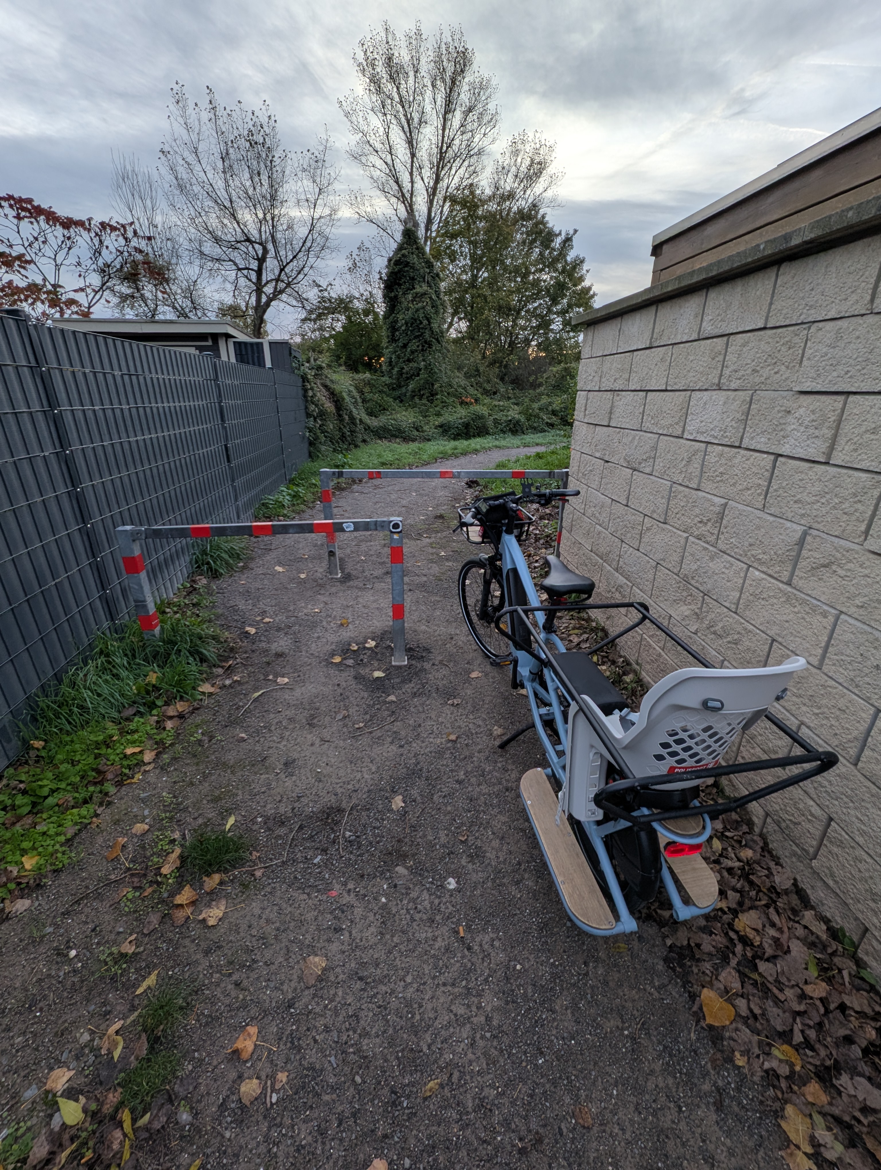 Das Drängelgitter steht so eng, dass Radfahrer absteigen müssen. Mit einem größeren Fahrrad kommt man hier zur nebengelegenen Kita gar nicht.