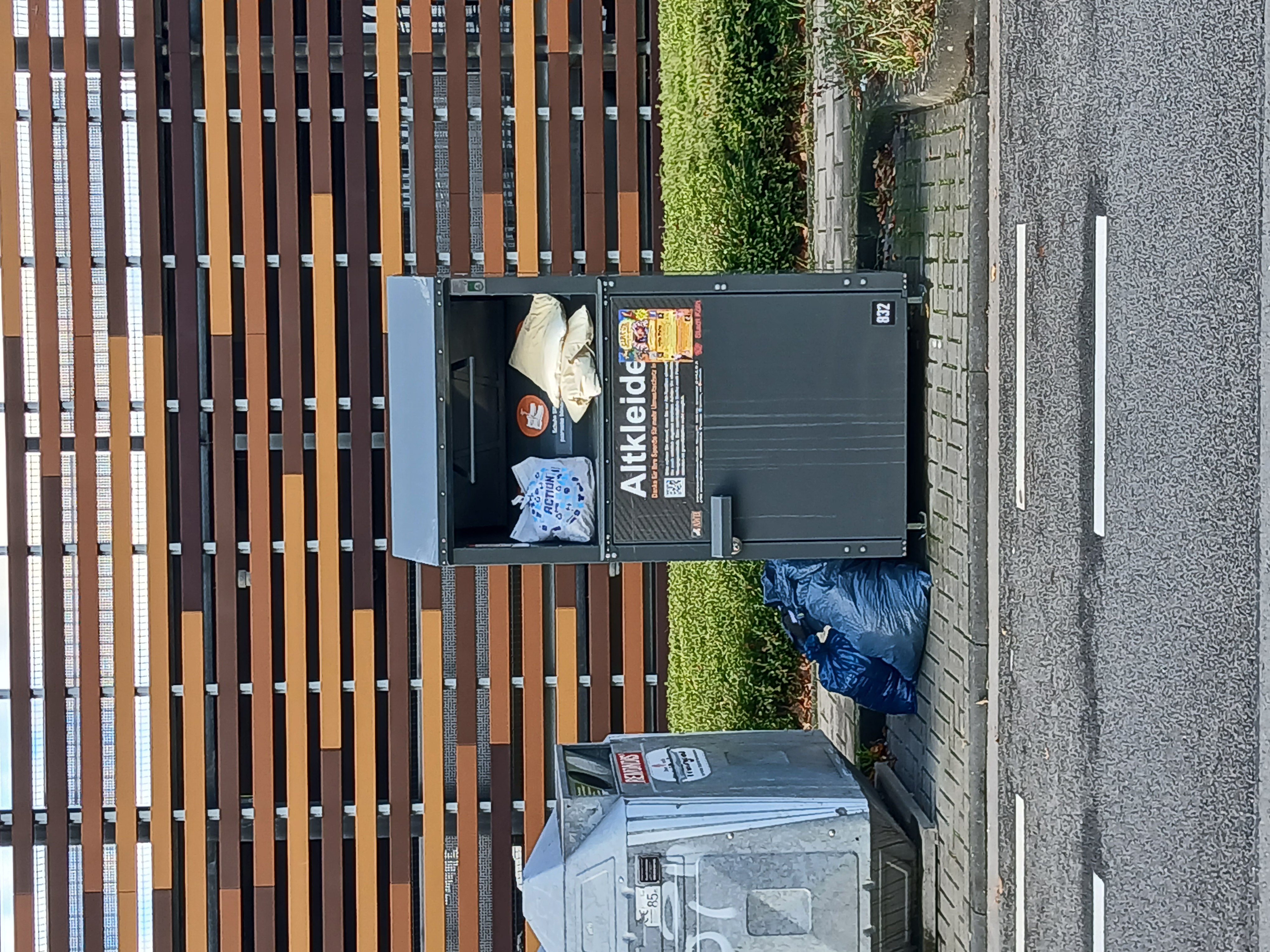 Der Altkleider-Container vor dem Parkhaus in Wahn ist mal wieder voll. Es stehen bereits mehrere Säcke daneben, die auch bereits begeistert durchsucht werden.
