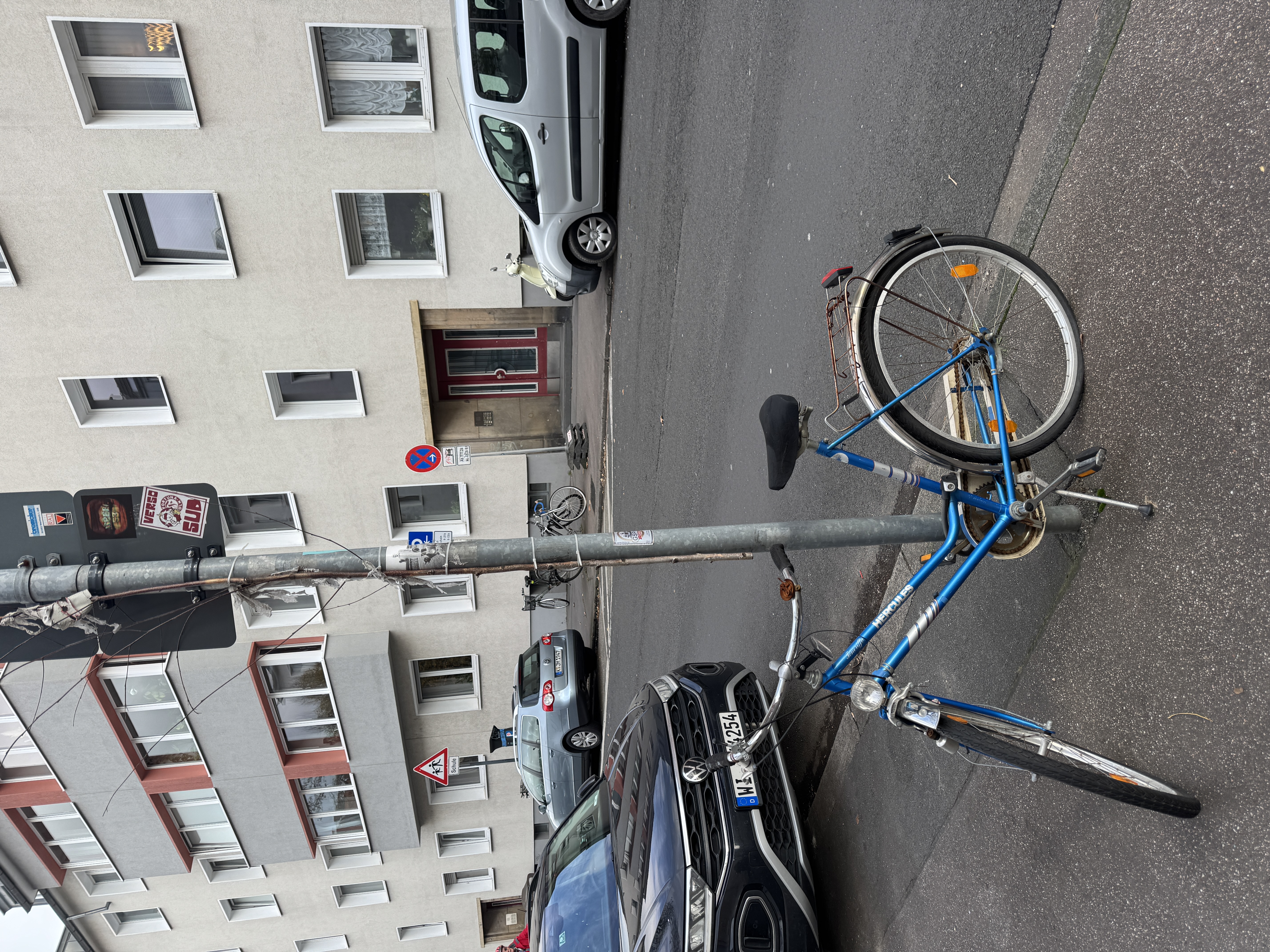Schrottrad vor Hausnr. 30, gegenüber 55. Schon seit langer Zeit dort, ca. 1 Jahr, scheinbar ungenutzt, inzwischen verrostet. In Bearbeitung Schrottfahrräder Münstereifeler Str. 30 50937 Köln Deutschland Statusvermerke Das Anliegen wurde erstellt. Neu So., 02.11.2025 - 14:34