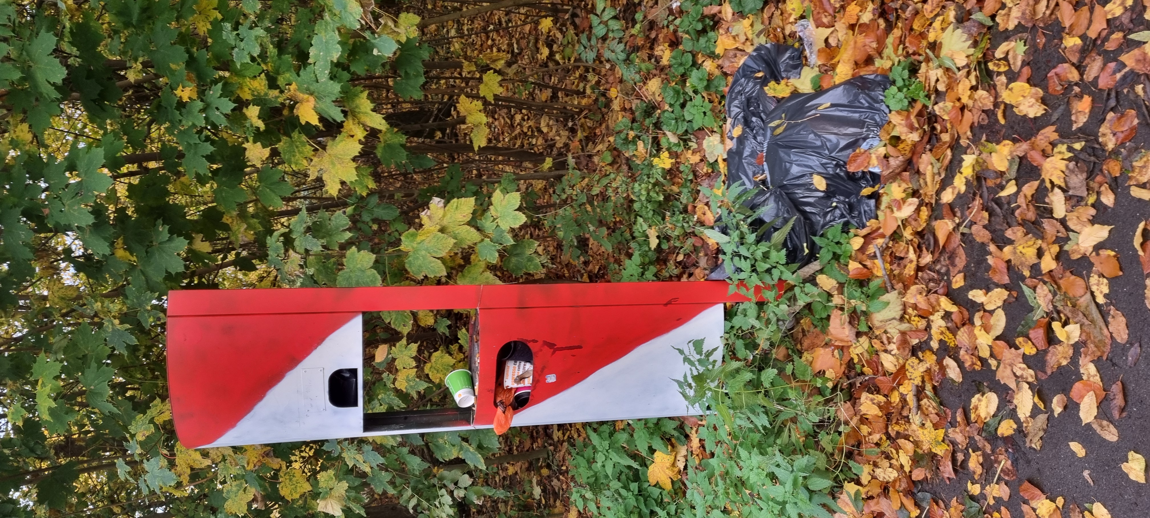 Wilder Müll neben überfüllten Mülleimer in der Marcel-Proust-Promenade