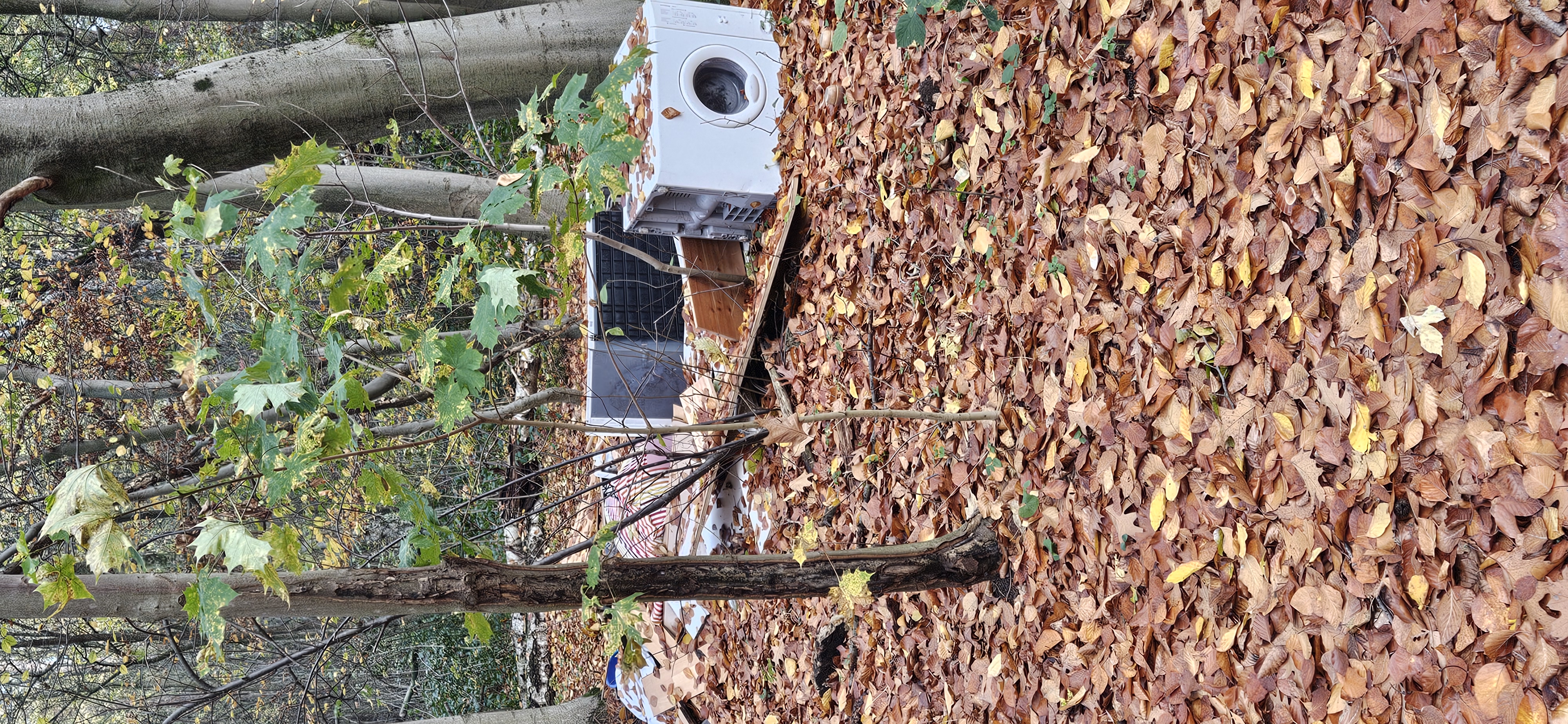 Hier hat wohl ein Schwein seine Küche entsorgt. Müll lag bereits am 30.10. dort. Ein AWB Fahrzeug war zu diesem Zeitpunkt vor Ort, hat aber nur die gegenüber abgelegten Müllsäcke mitgenommen.
