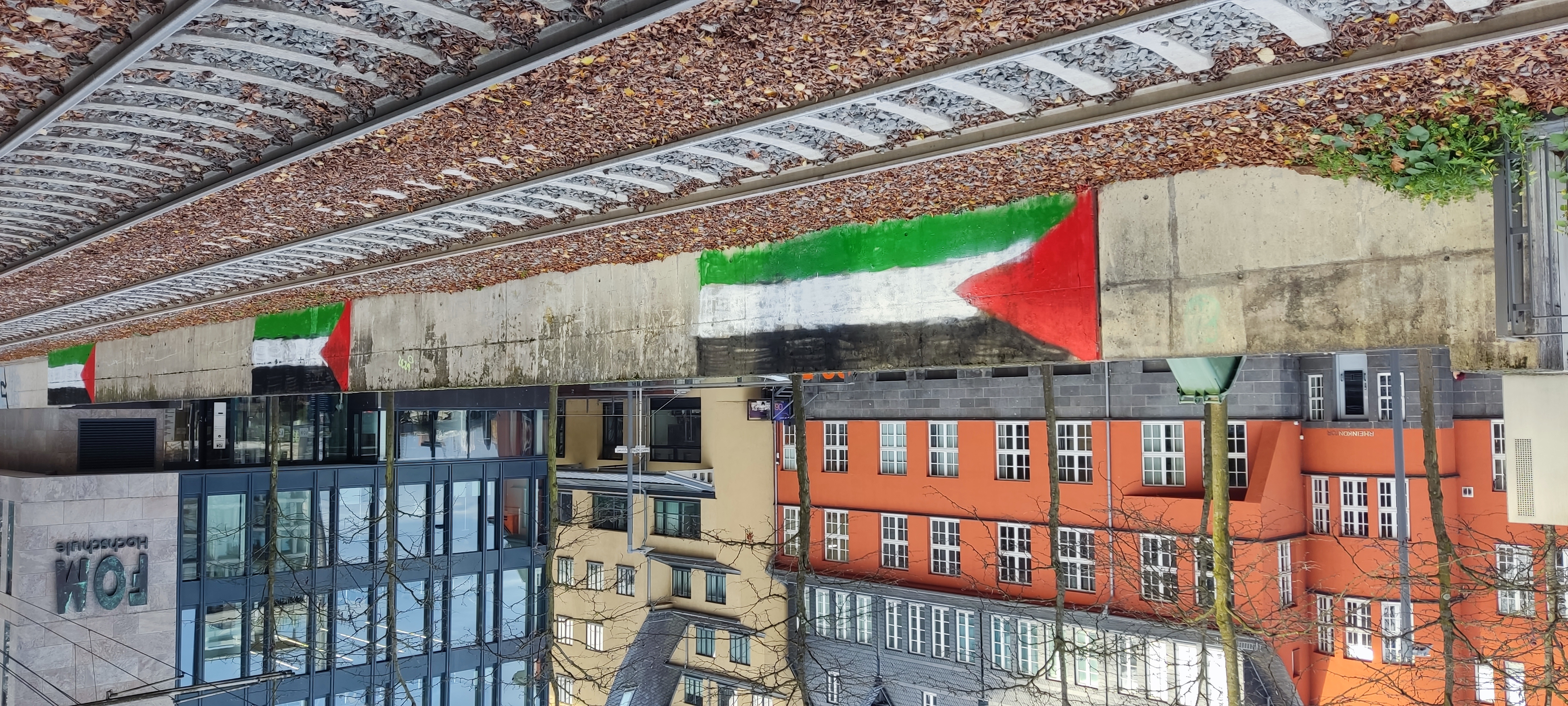 Dauerhafte (Graffiti ) Verunreiniging des öffentlichen Raums mit politischen Symbolen.
