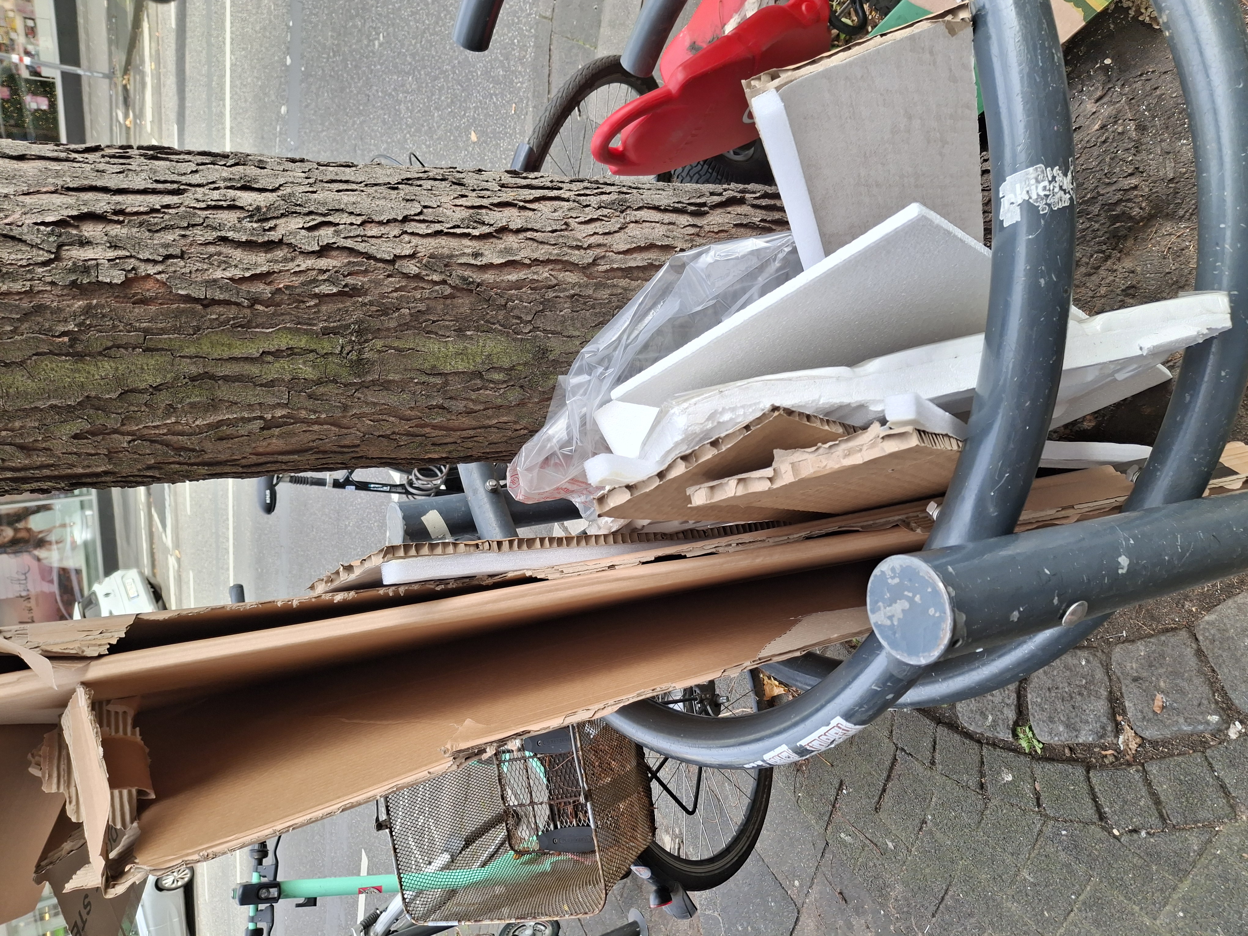 Kartons, Styropor, Plastik vom Pommes-Laden babapom wurde der Müll heute "entsorgt". Es wird behauptet, sie hätten angerufen!!?