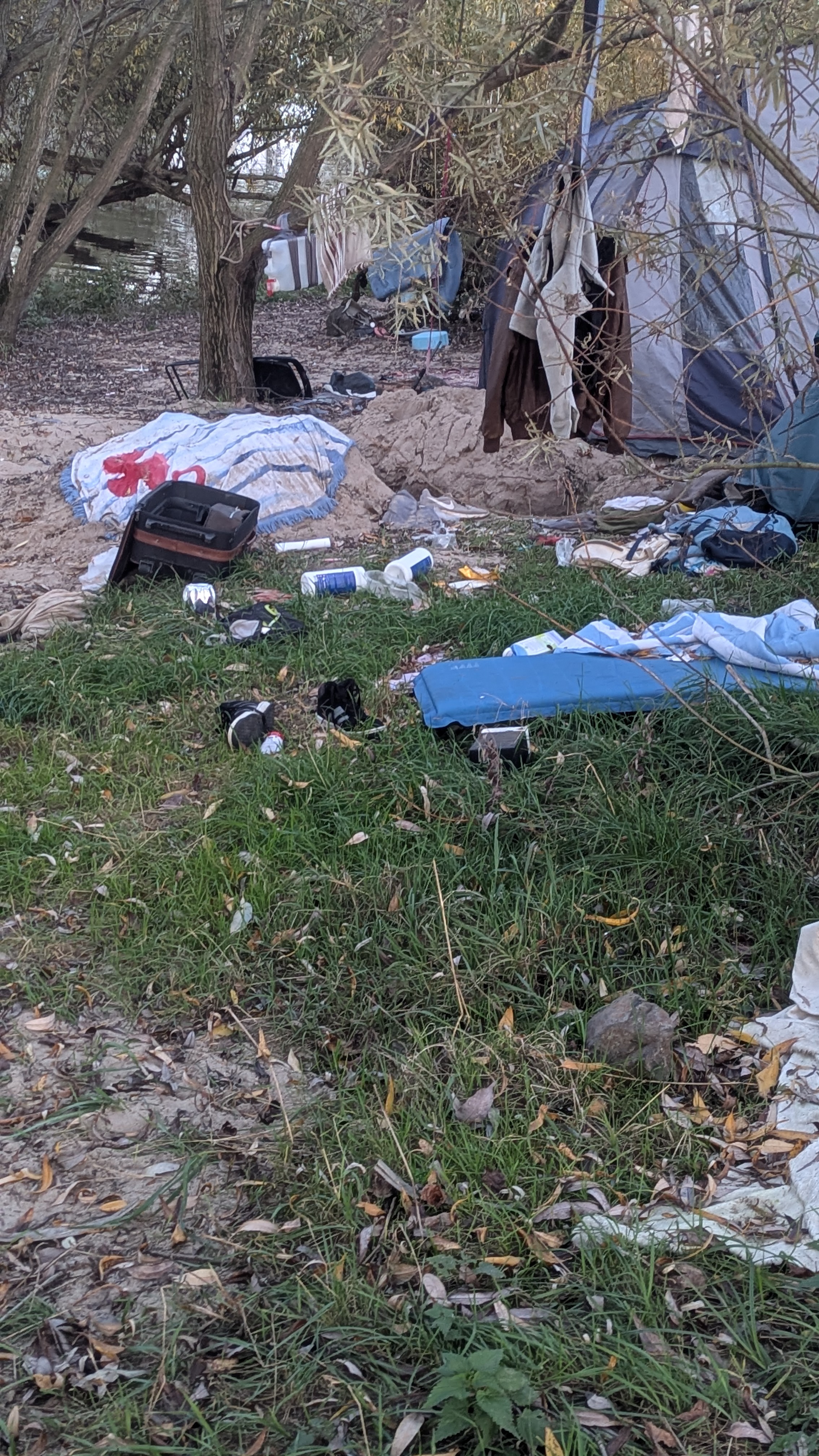 Seit dem Sommer ein Zeltlager welches sich mittlerweile stark ausbreitet und immer mehr Müll anhäuft. Fäkalien rund um das Lager. Dieser Ort sollte allen Bürgern zur Erholung dienen und nicht so vermüllt werden.