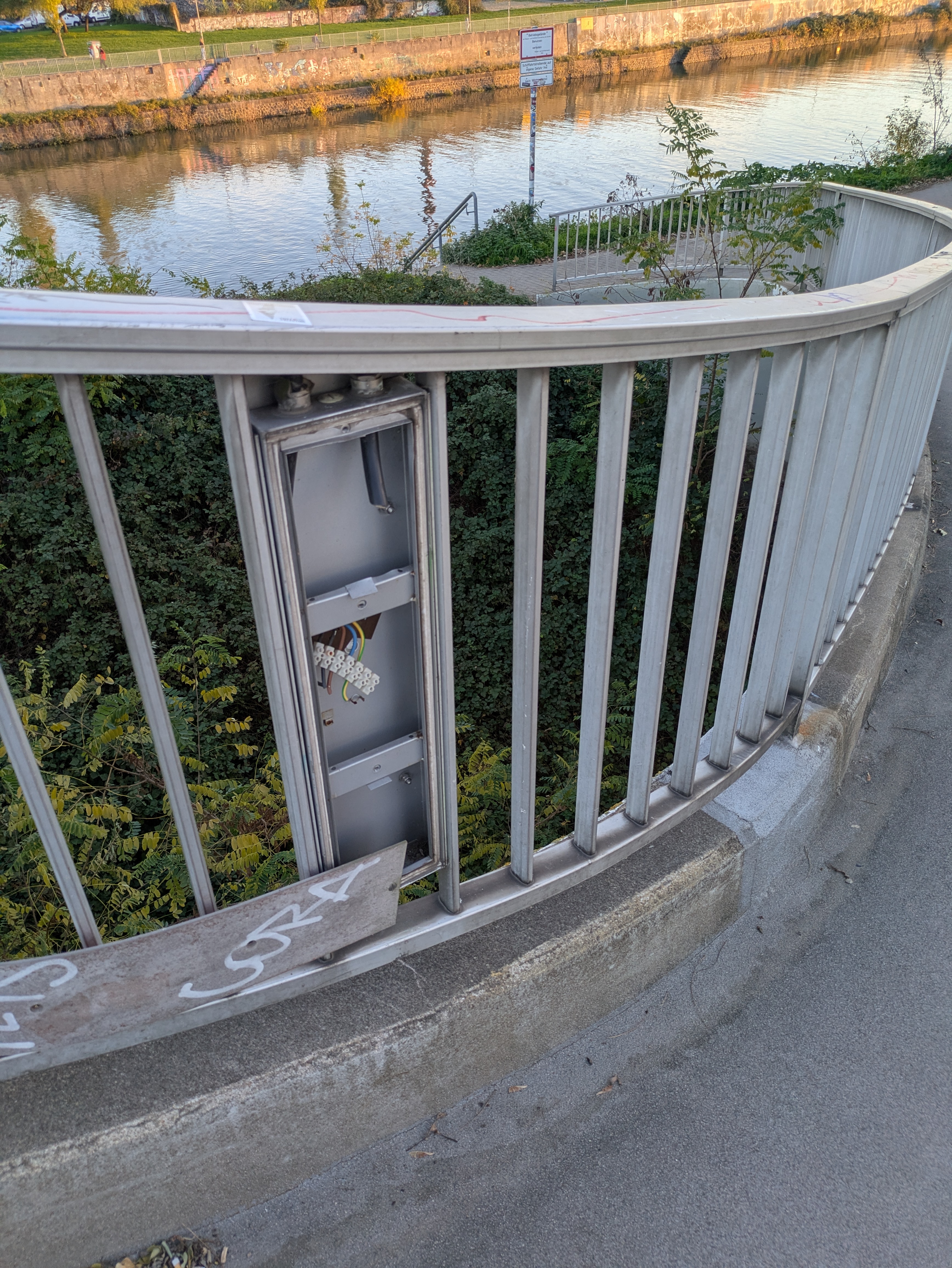 Kabel liegen an ehemaliger Beleuchtung frei. Abdeckung wurde entfernt.