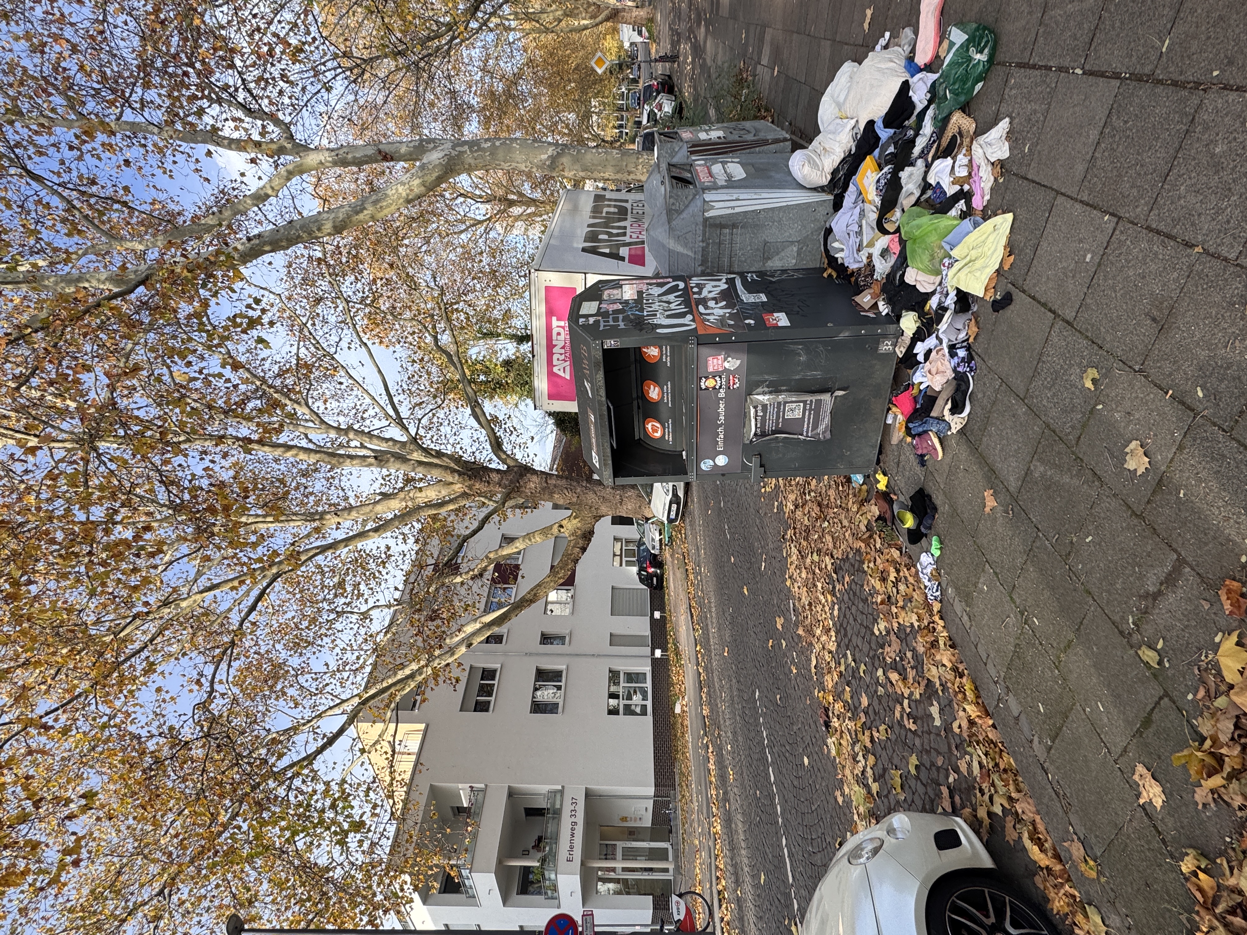 Seit Wochen wird der Müllberg neben dem Altkleidercontainer immer größer, so dass ältere Leute mit Rollatoren zeitweise auf dem Gehweg gar nicht vorbeikommen. Vielen Dank für Ihre Mühe.