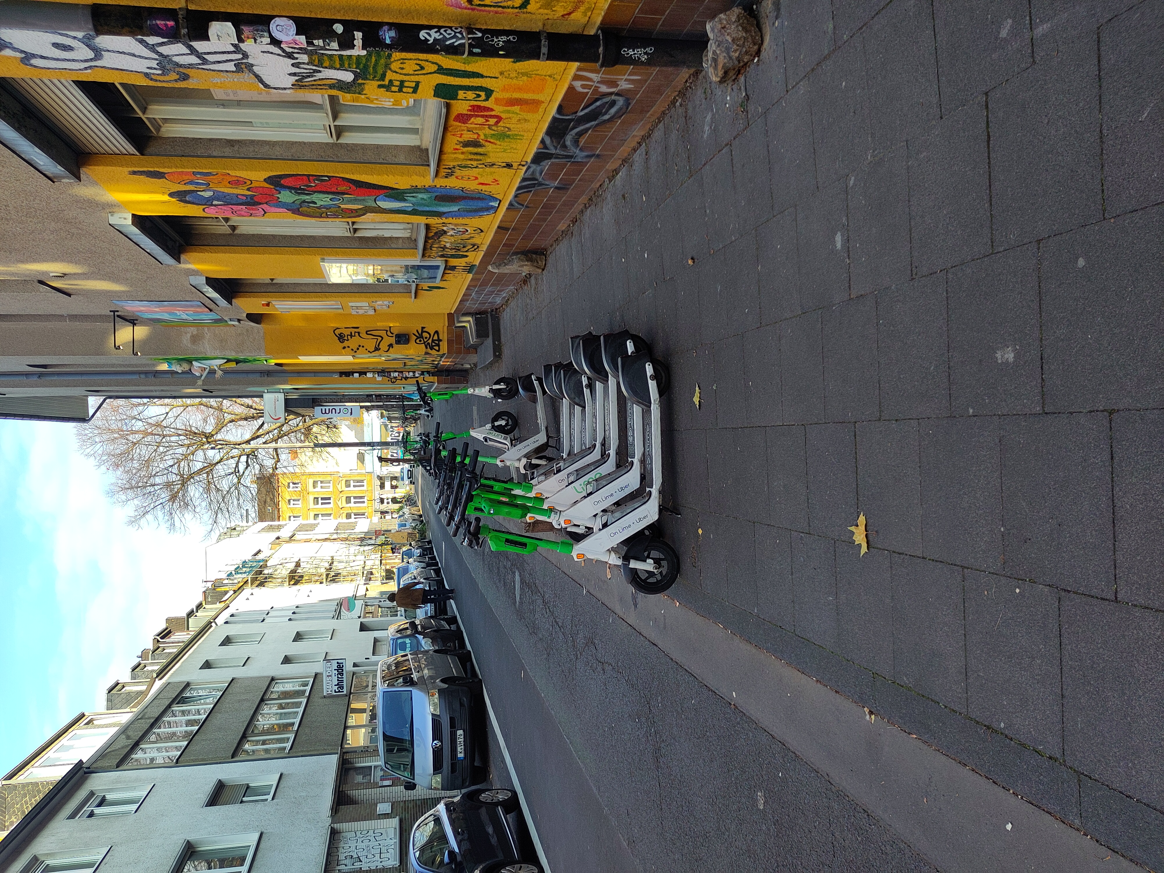 Massenweise E-Scooter, die den Bürgersteig verstellen