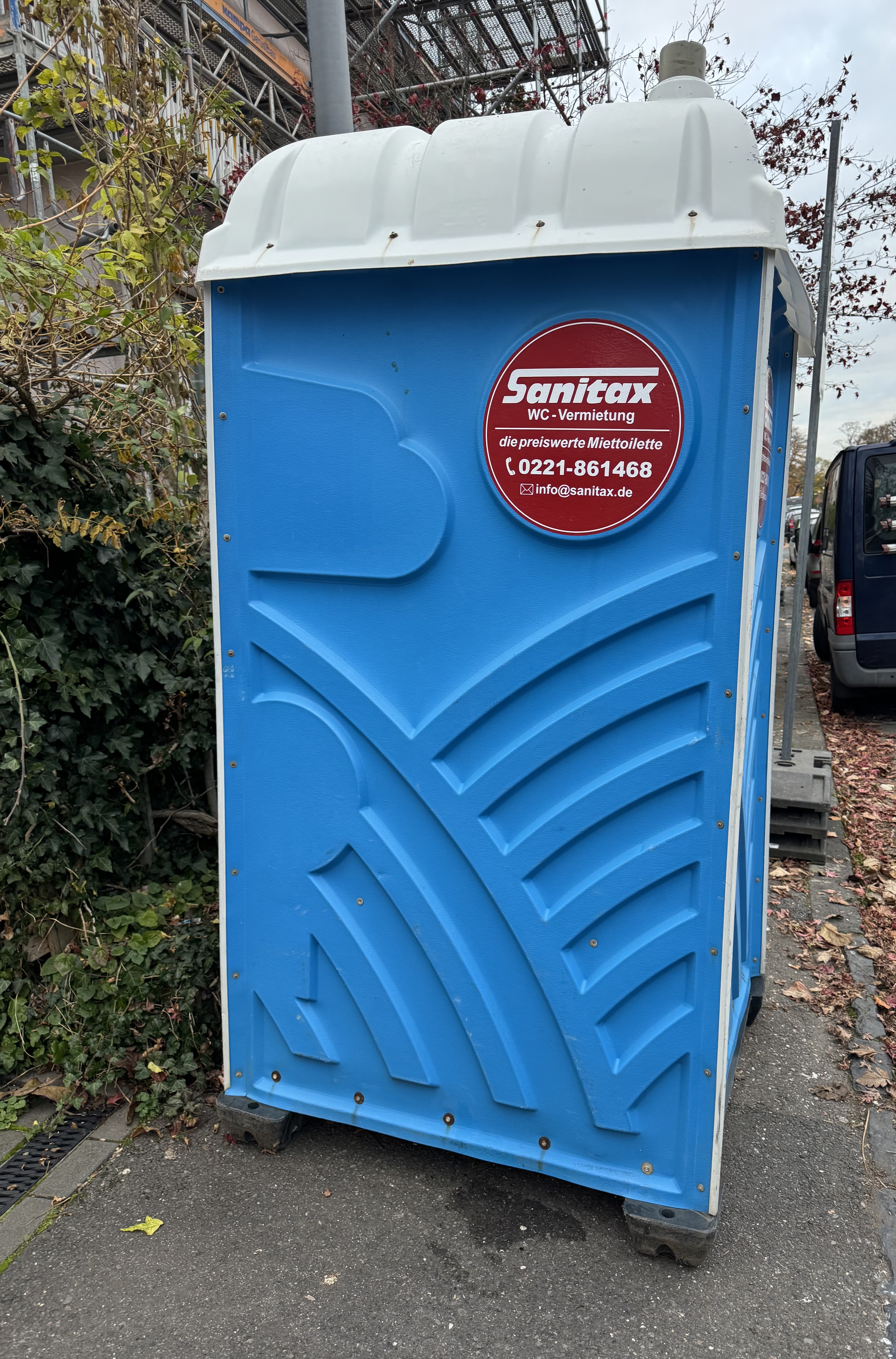 Die Vorort arbeitende Firma wurde angewiesen unverzüglich die Mobiltoilette auf einen Parkplatz zu stellen.