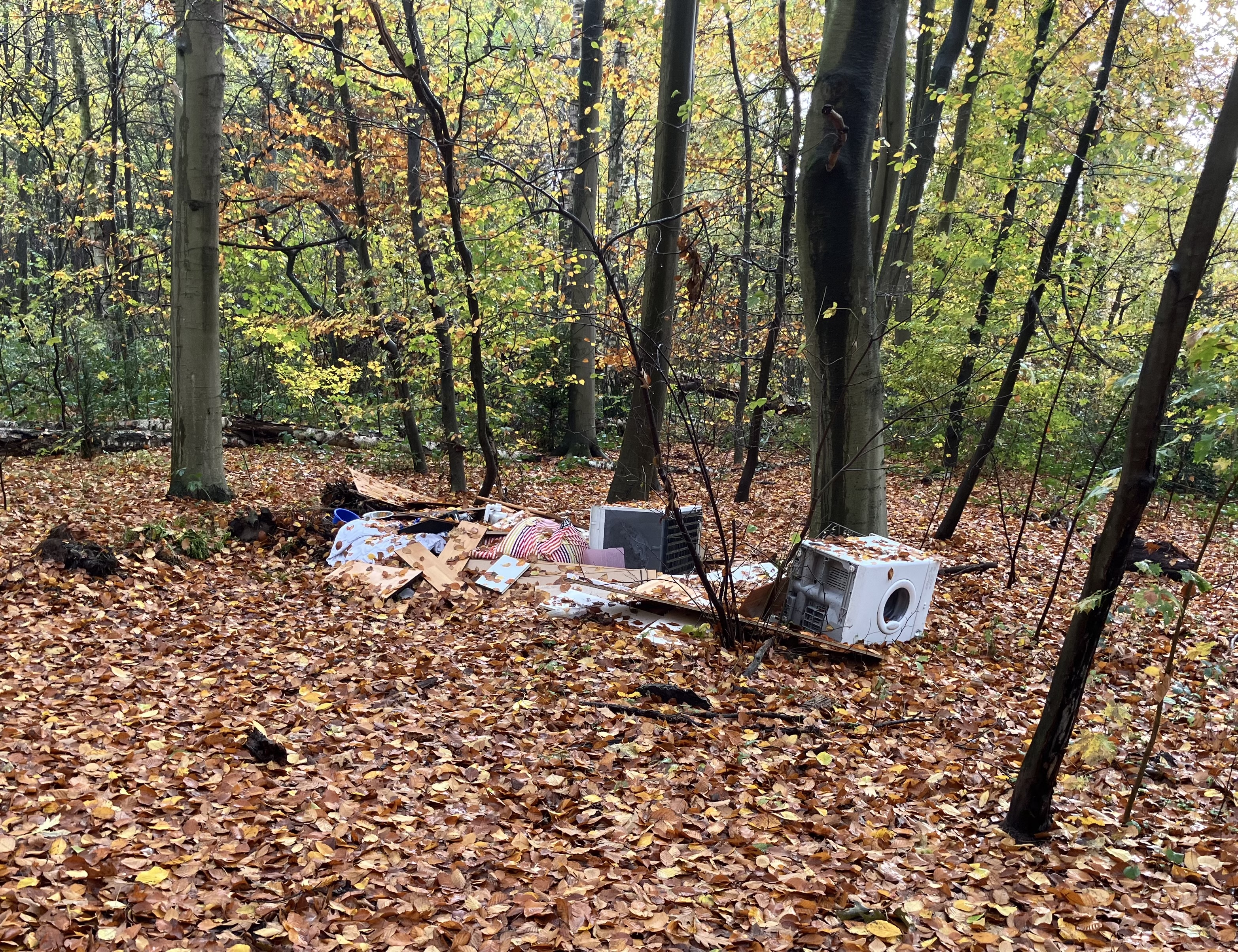 Wilde Müllkippe im Wald Goffineweg gegenüber dem Parkplatz.
