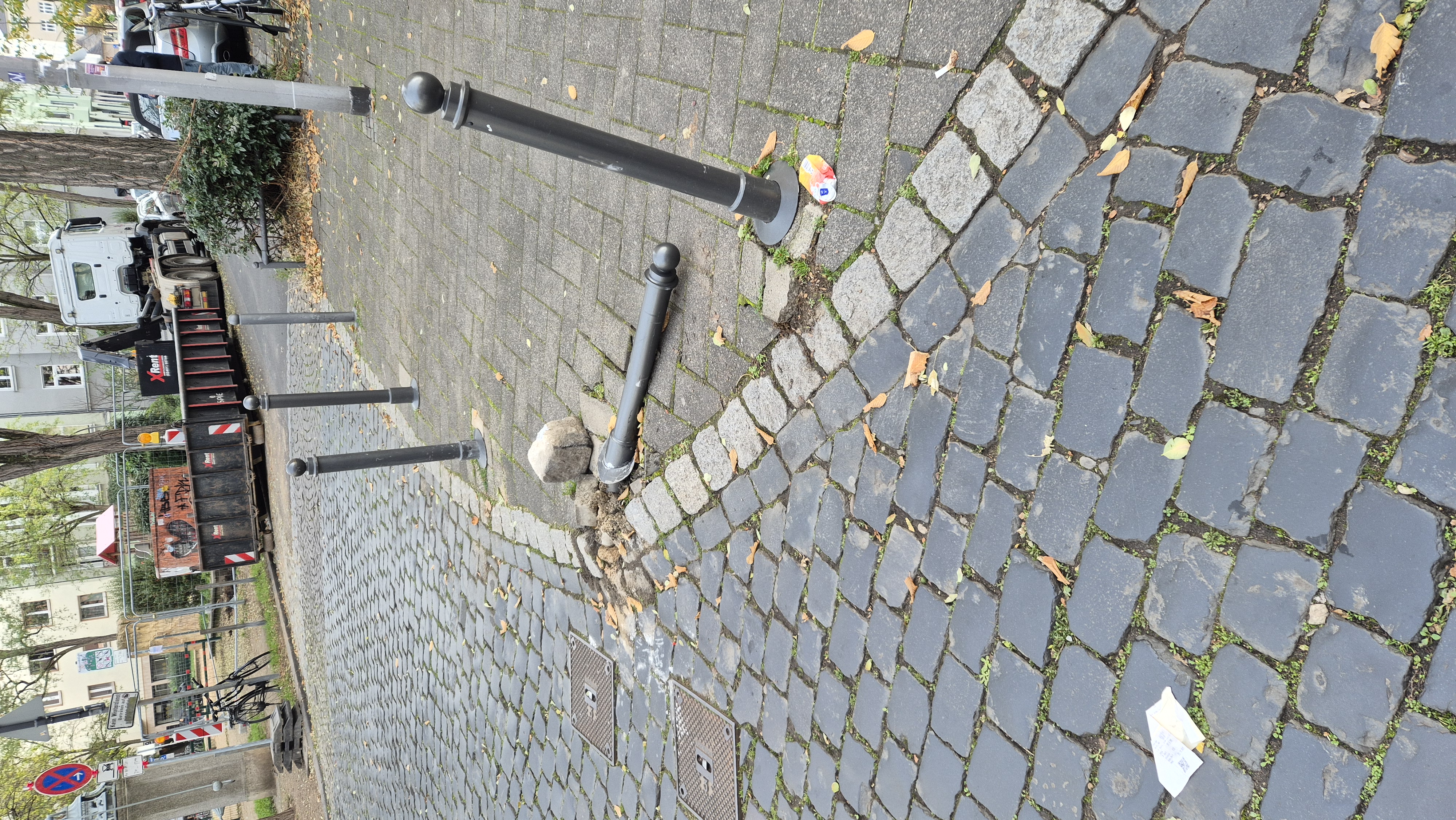 An dem Reischplatz/ Helenenwall sind zwei Poller angefahren. Es besteht Sturzgefahr für Fußgänger.
