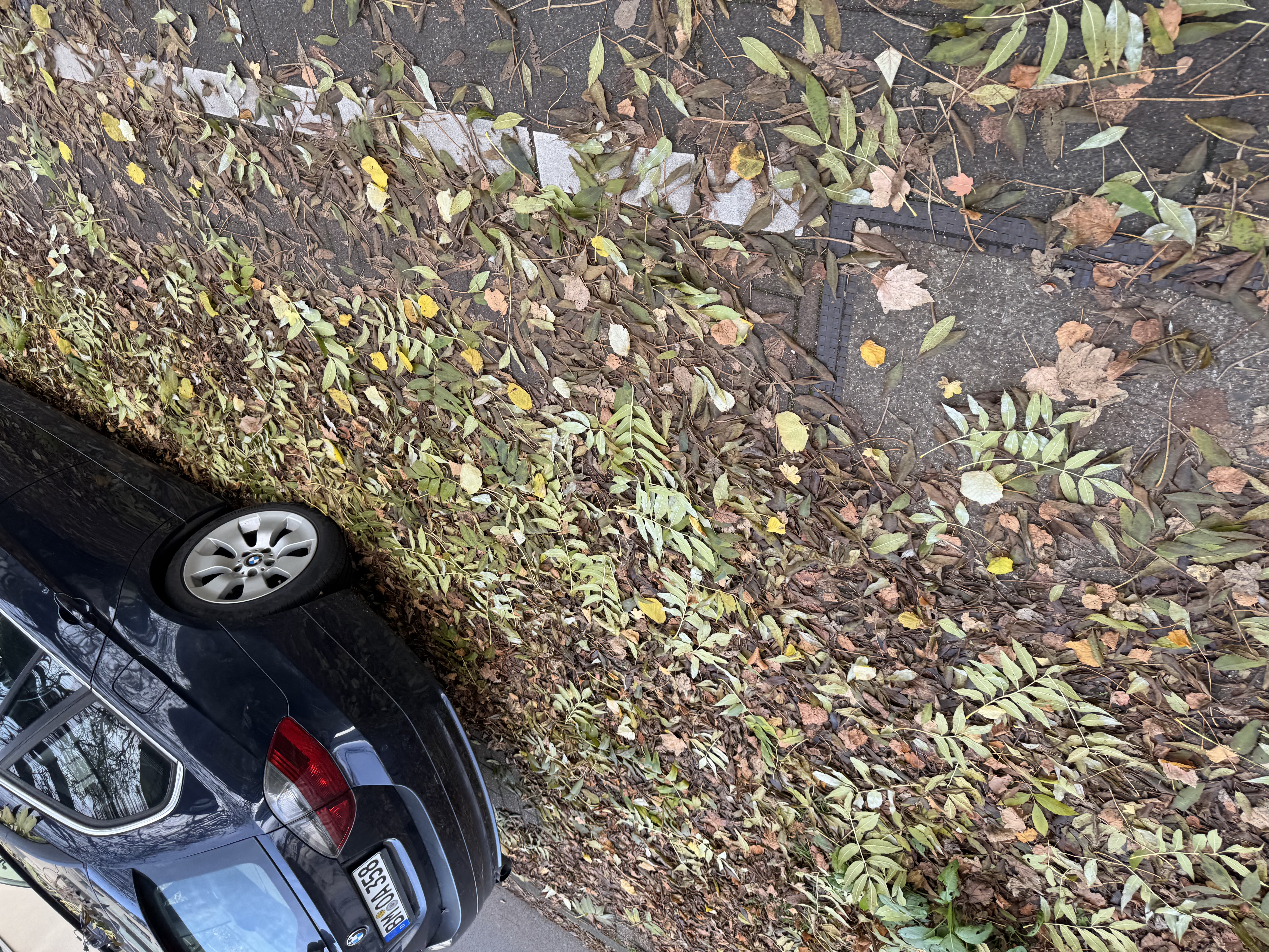 Das ist der kaum noch zu erkennende Radweg. Seit einigen Wochen voller Laub, bei Nässe besteht hohe sturzgefahr