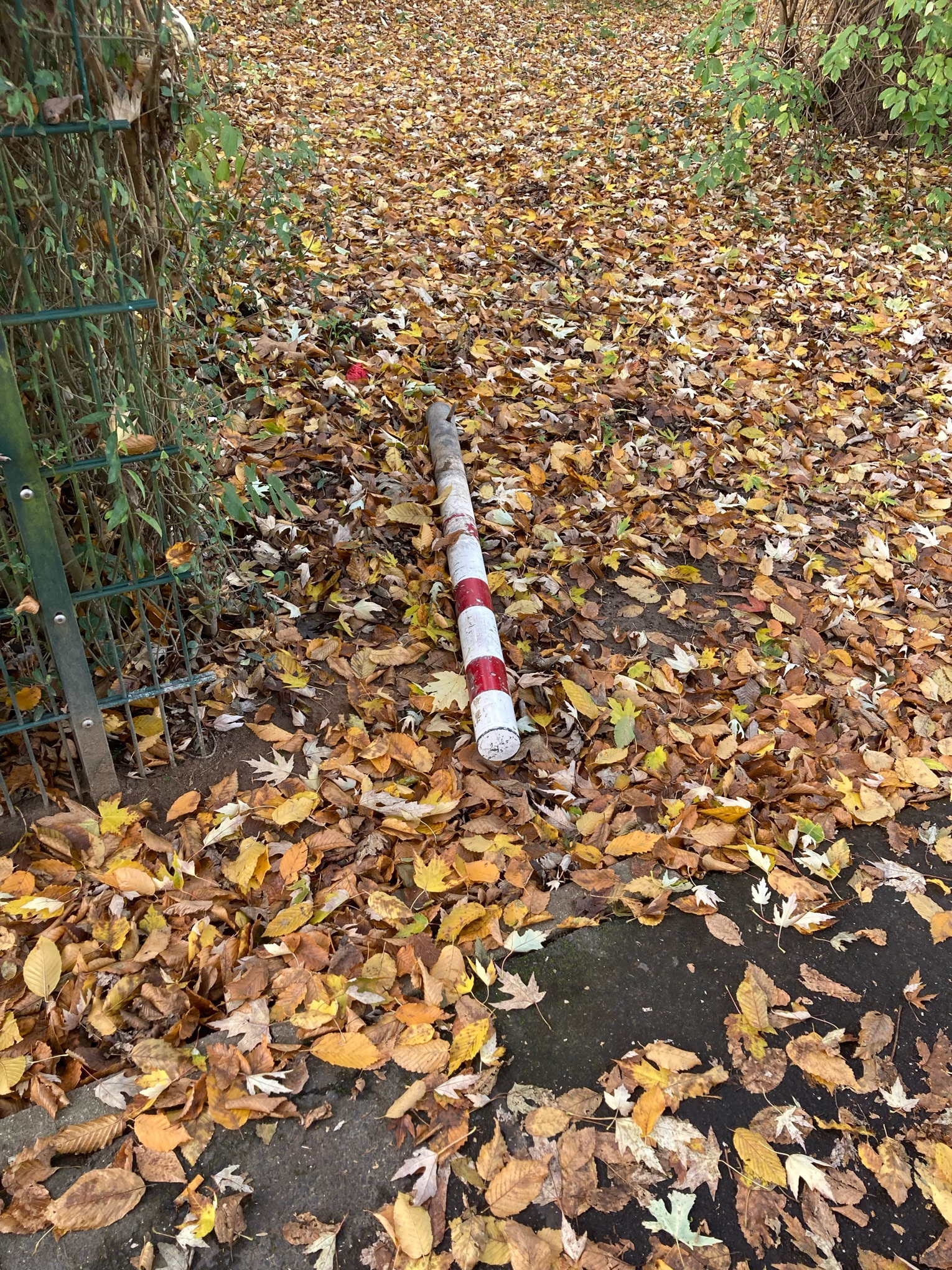 Sperrpfosten wurde aus der Verankerung gehebelt. Der zweite Sperrpfosten ist ebenfalls beschädigt Neu Umlaufsperren / Drängelgitter Asternweg 29 51143 Köln Deutschland Statusvermerke Das Anliegen wurde erstellt. Neu Do., 13.11.2025 - 16:45