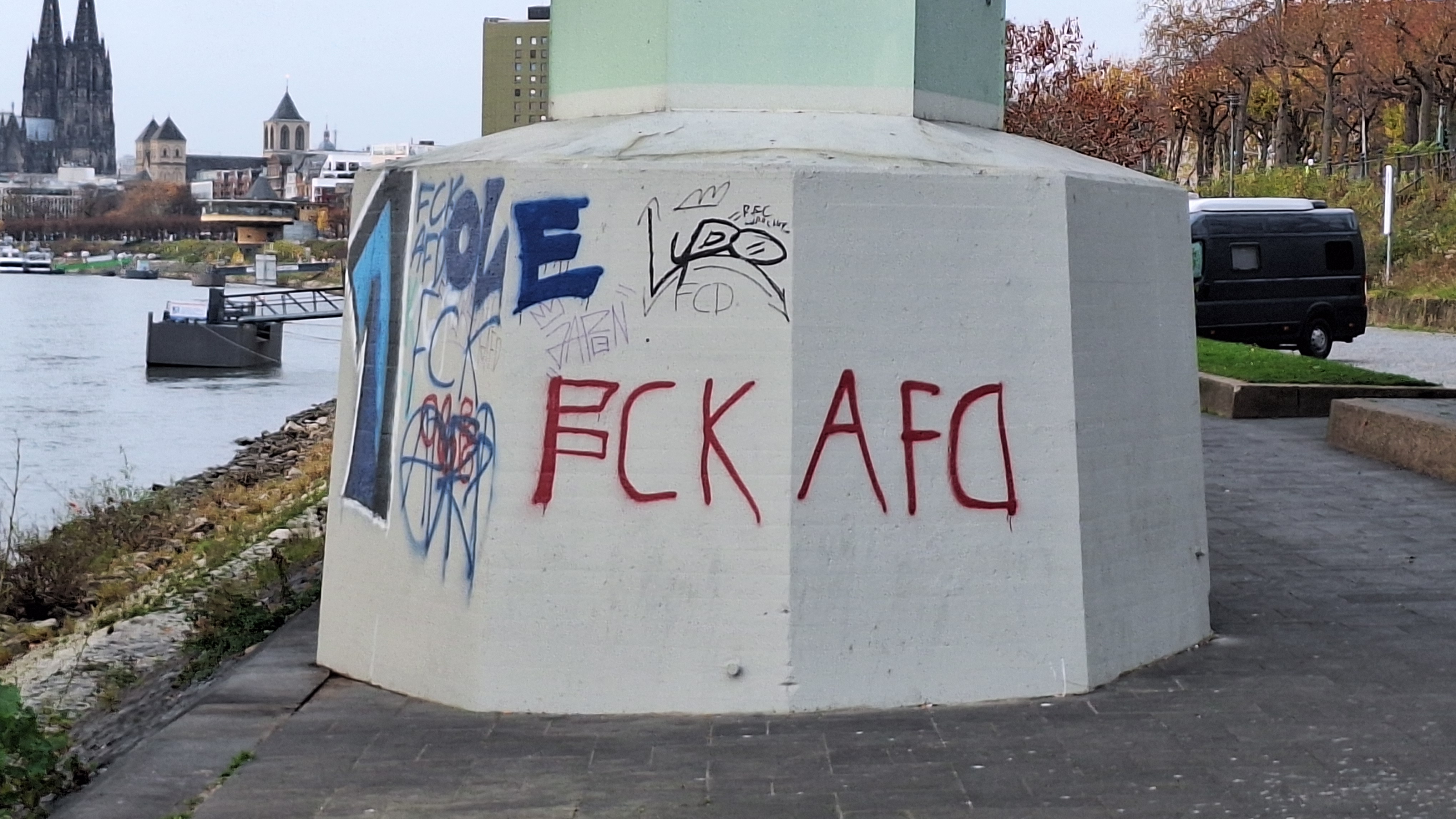 Unter der Zoobrücke linksrheinisch. Weiteres Politisch motiviertes Graffiti