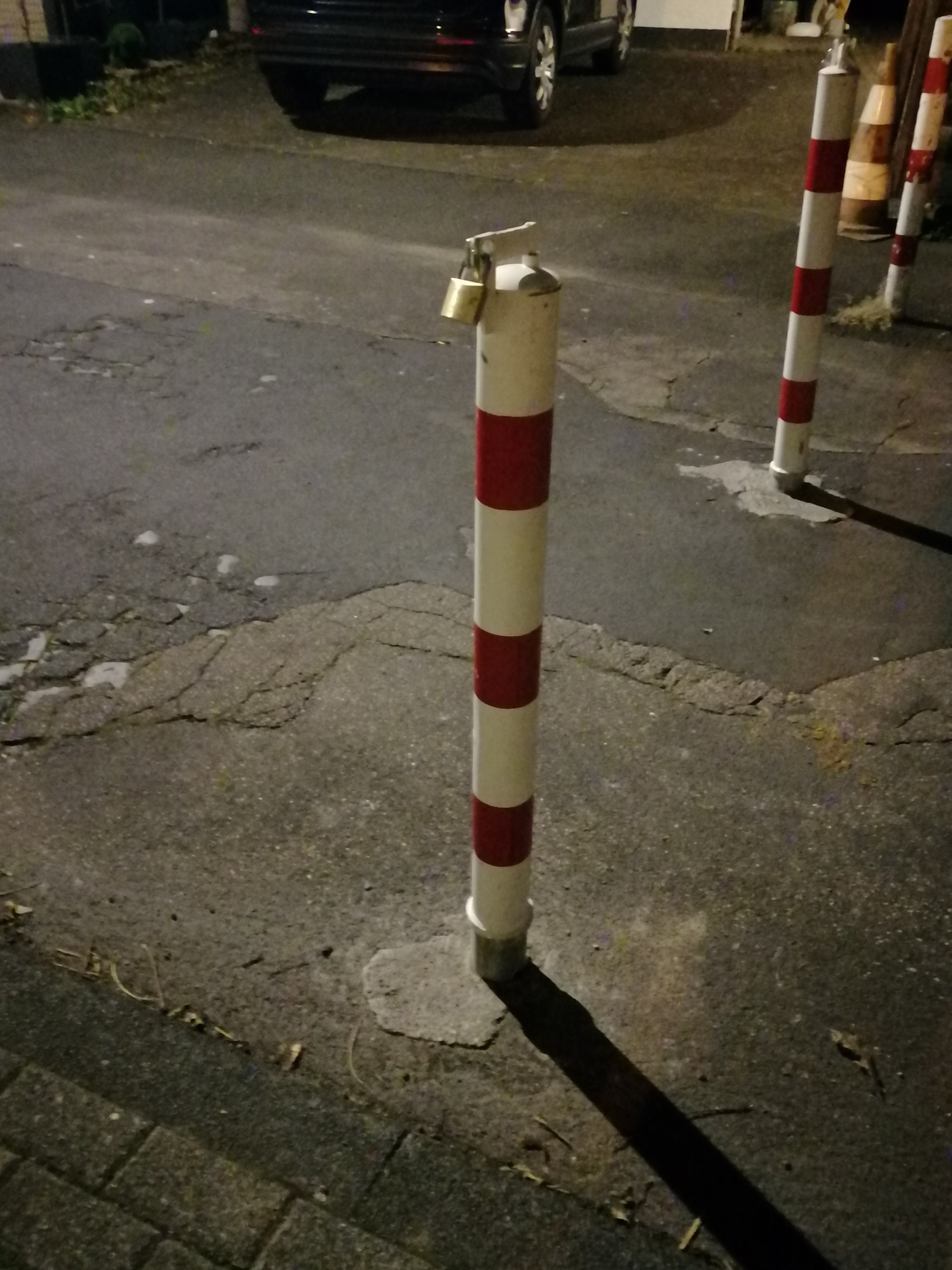 Leider hat der AWB Trupp heute die beiden Poller erst mit dem Schloss versehen und dann eingesteckt so das man diese einfach herausziehen kann. Na klar, ist für diese pfiffigen Kerlchen eine feine Sache aber nicht Sinn des ganzen. Bitte richtig verriegeln und abschließen. Danke