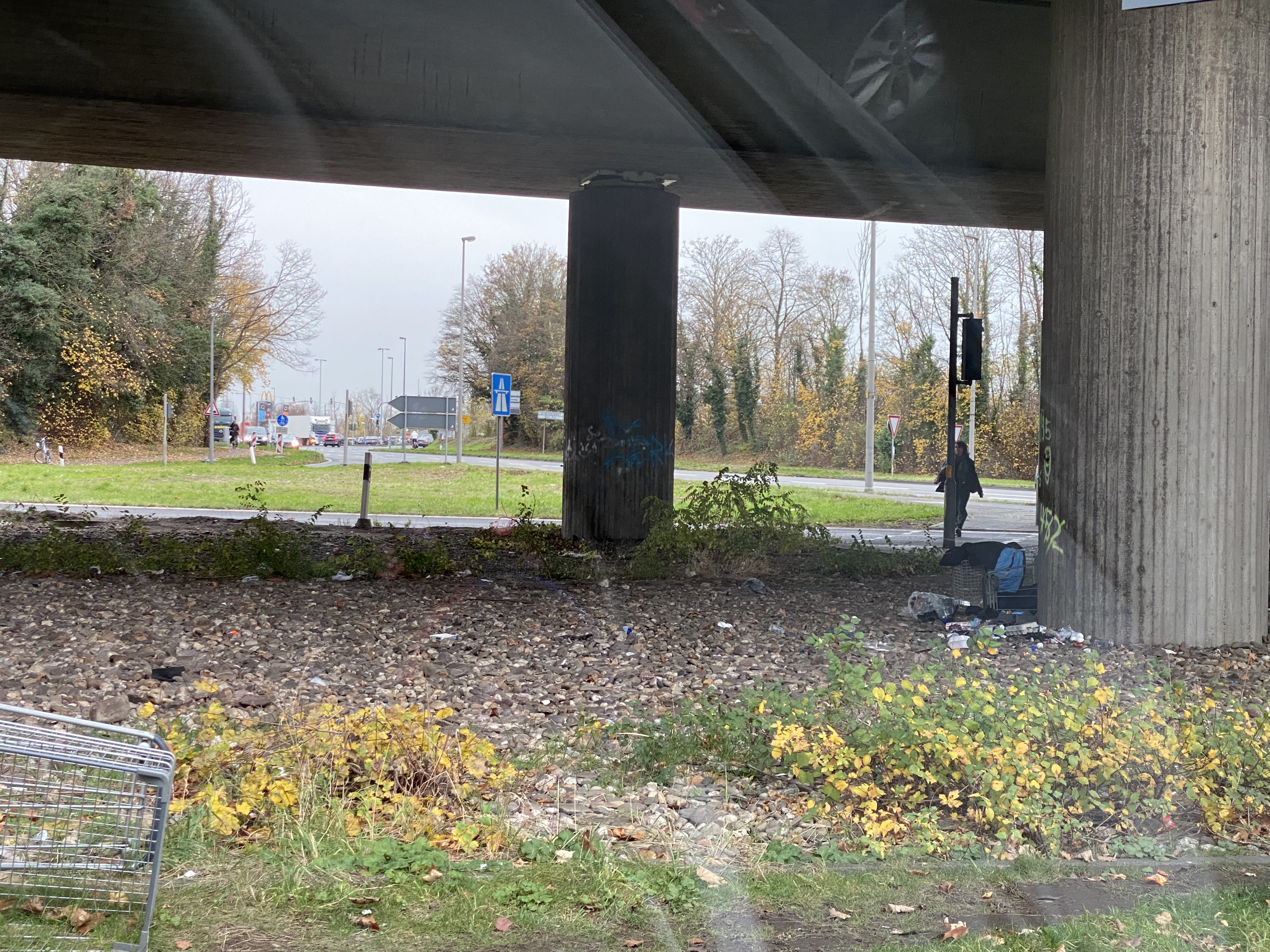 Mehrere Einkaufswagen und Müll liegen unter dem östlichen Zubringer , wenn man links Richtung Poll fährt! Direkt an der Ampel