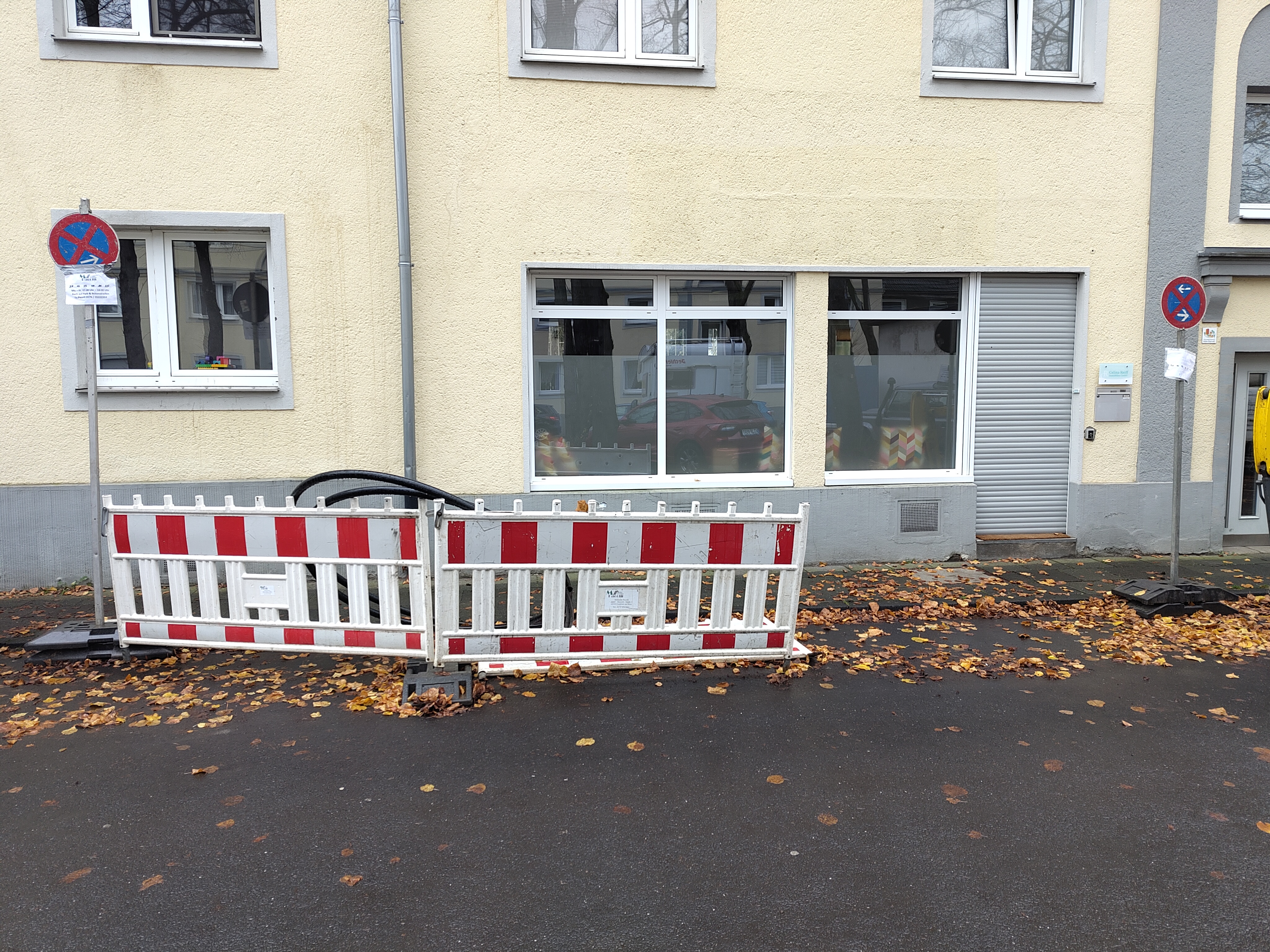 Parkplätze blockiert durch Firmenbaustelle, die seit 7.11. fertig ist.