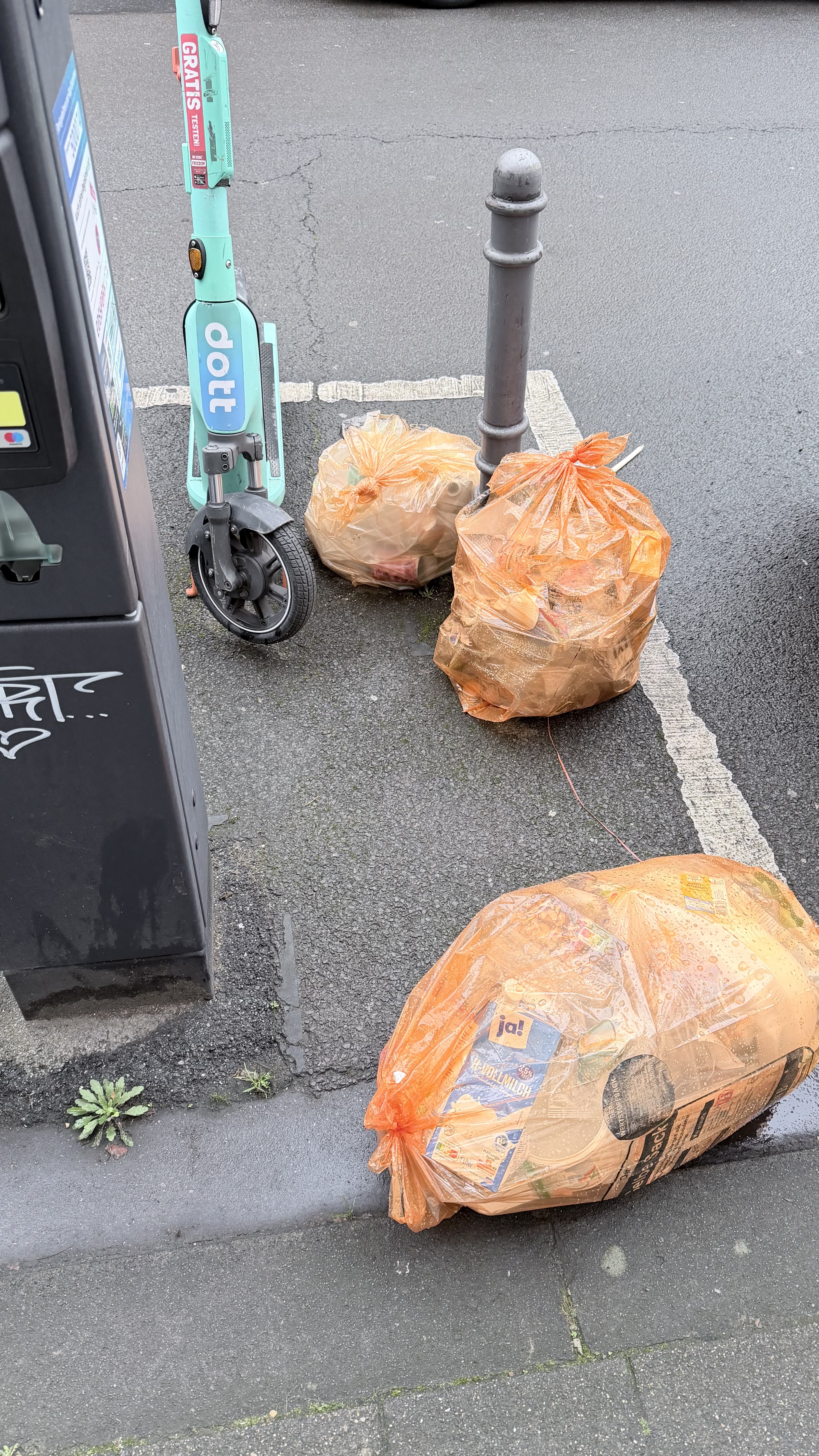An der Stelle liegen oft Säcke mehrere Tage wild in der Gegend rum. Anscheinend stimmt mit der Koordination der Abholung etwas nicht!
