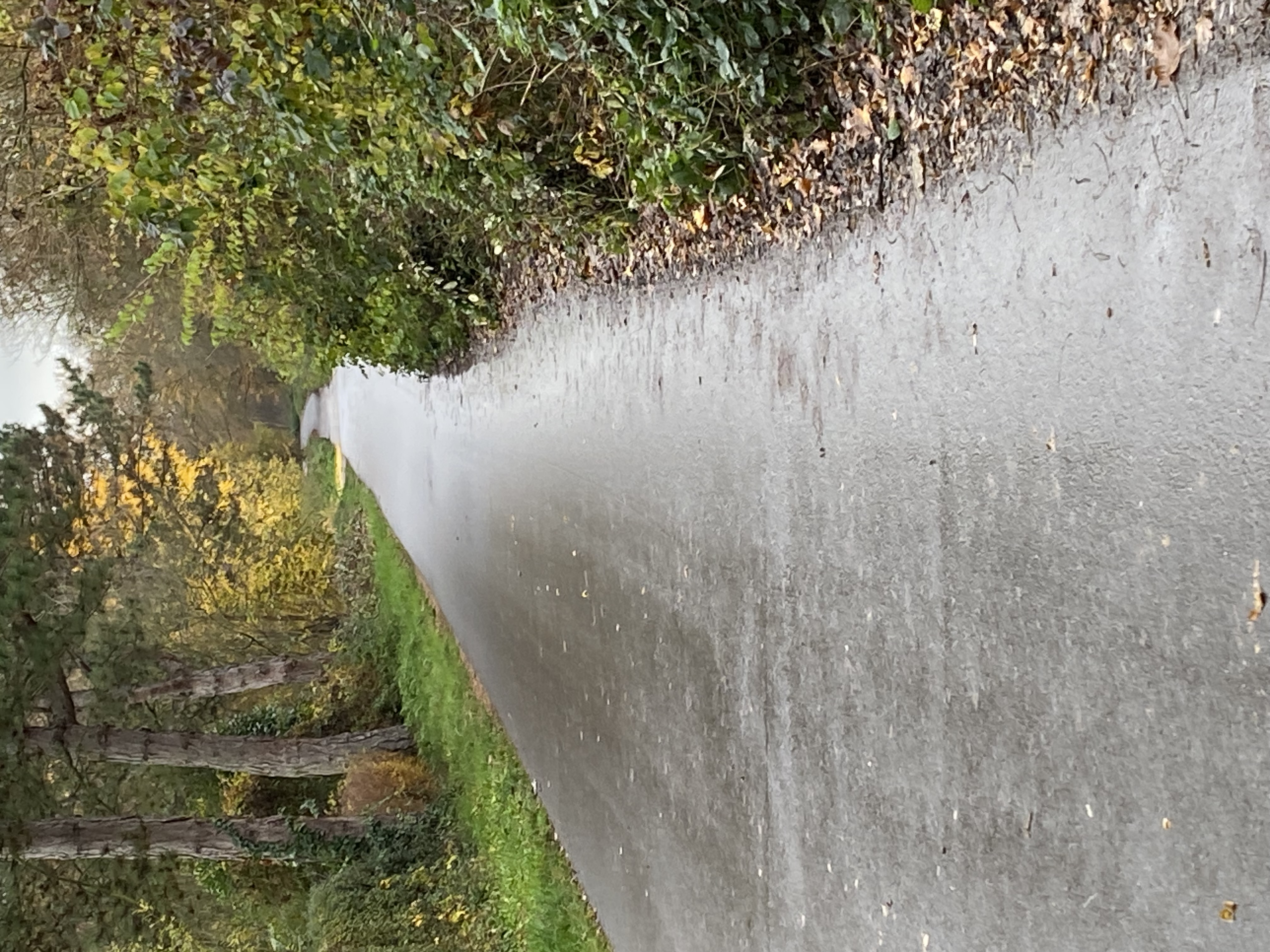 Der Überwuchs des Straßenbegleitgrüns verengt die Straße um ca. die Hälfte.