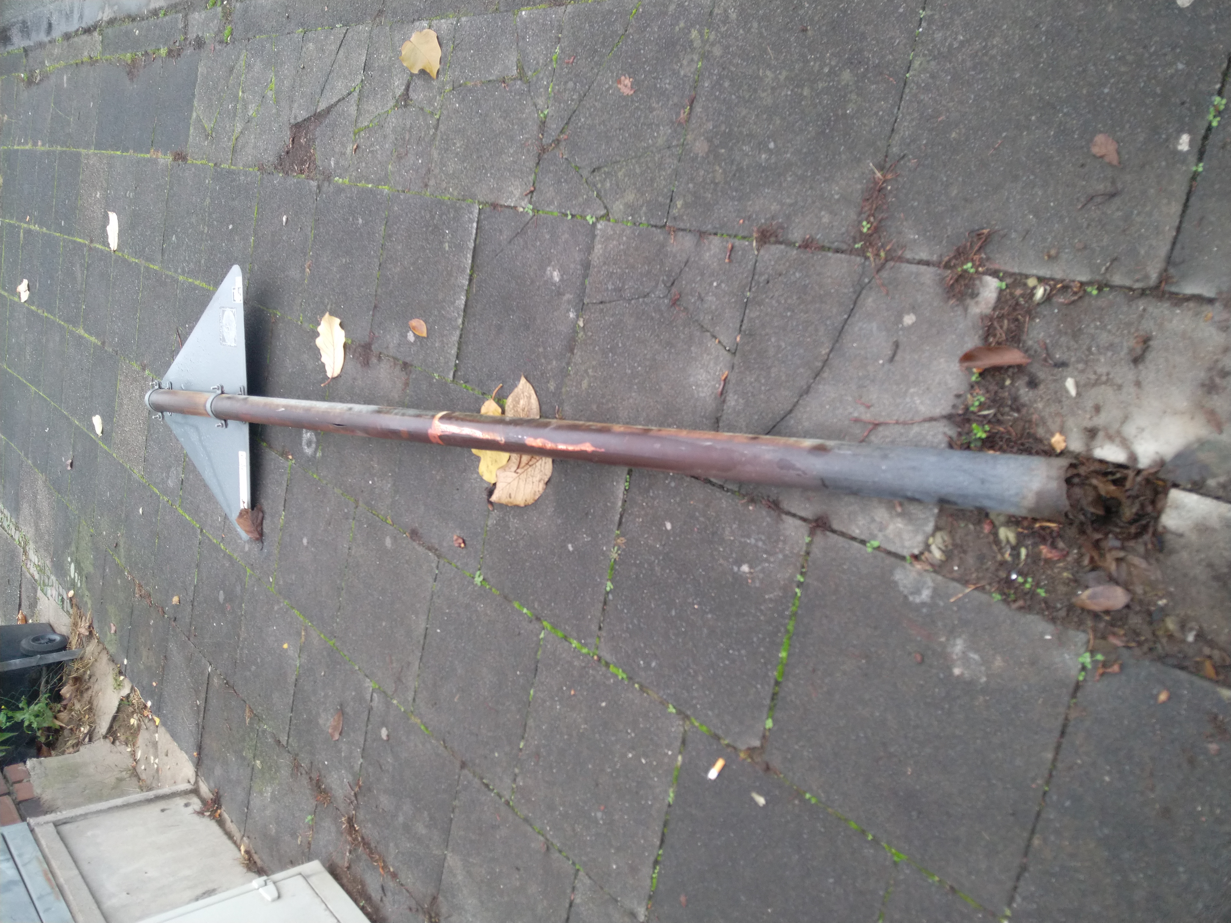 Fußfallstr. Ri. Hohensyburgstr., Ecke Küppergasse, VZ 102 umgefallen, am Fuß durchgerostet.