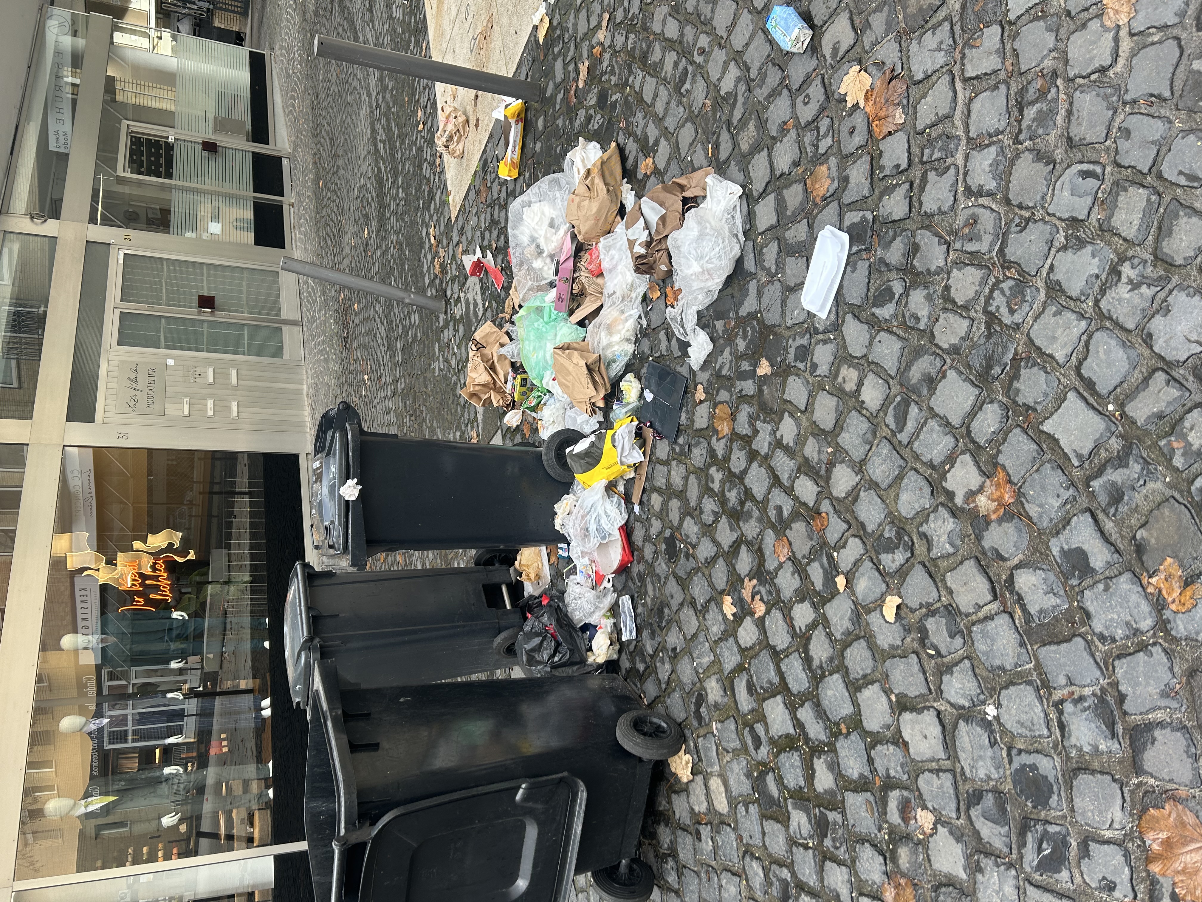 Herzogstraße Straßenlampe Nr. 3 dort liegt der komplette Müll auf dem Platz.