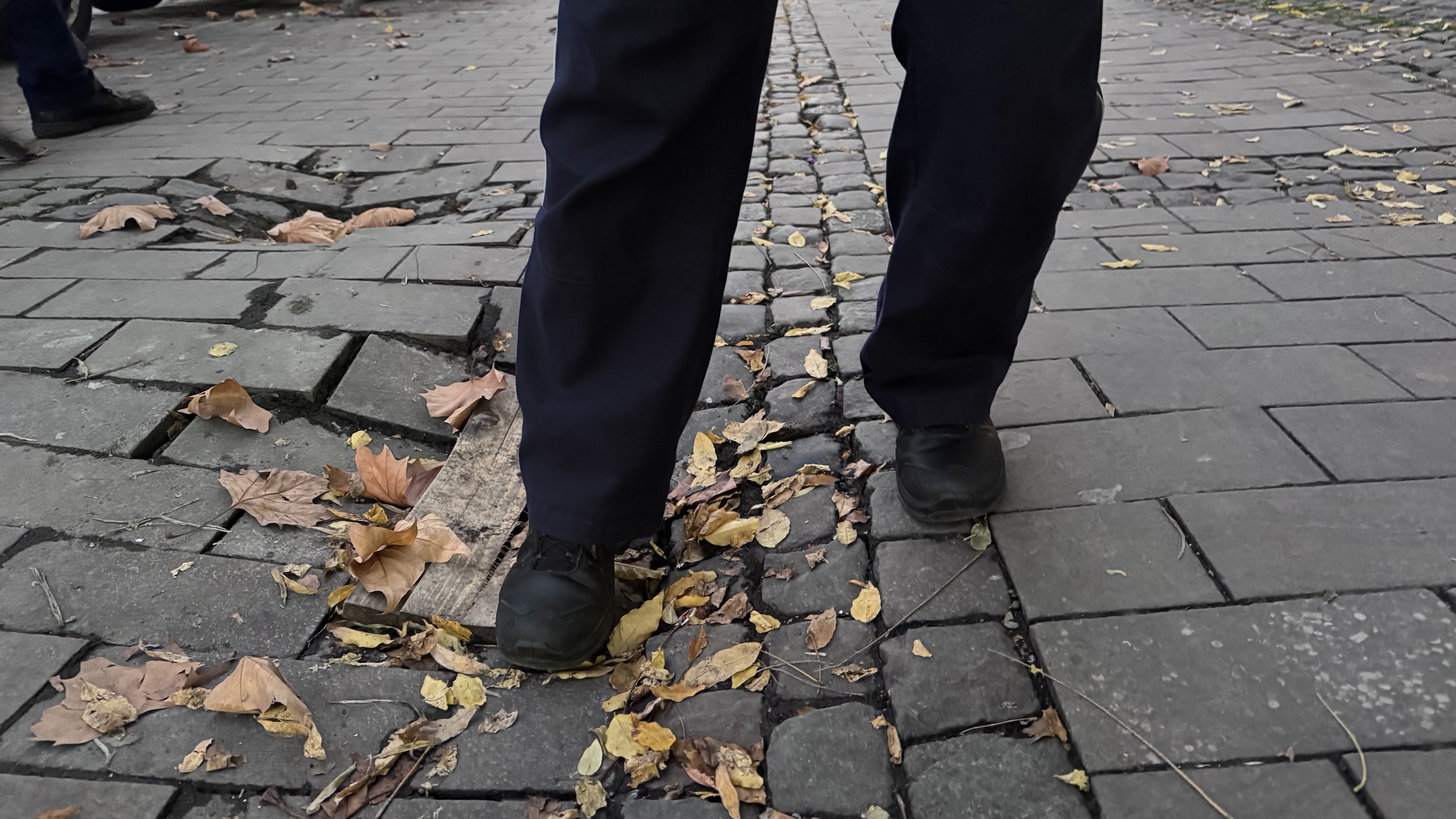 Zwei tiefe Löcher im Gehweg. Stolpergefahr, insbesondere in Hinblick auf den dortigen Weihnachtsmarkt