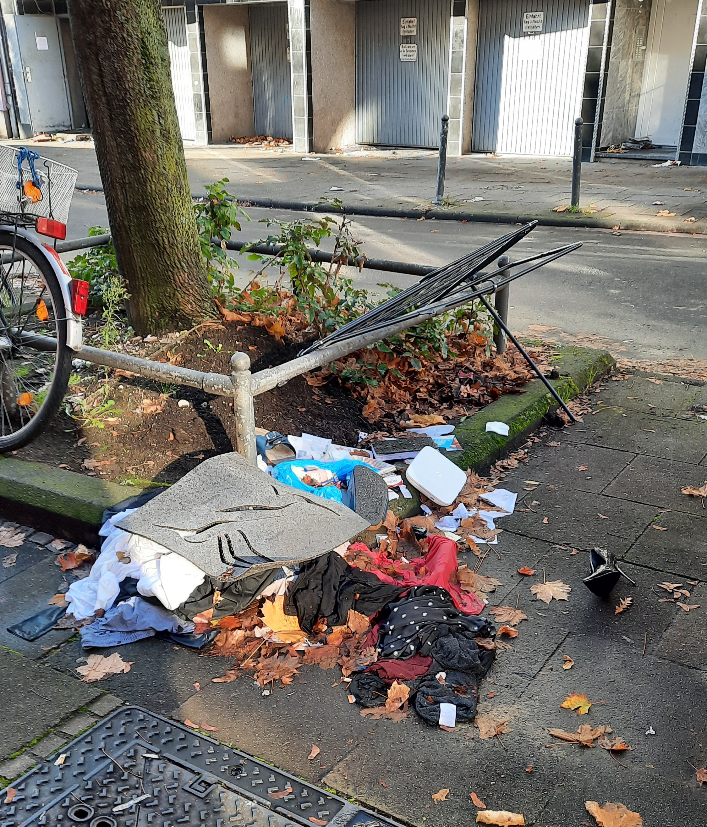 Volpertusstraße Ecke Gremberger Straße. Statt die Kleidung in den Container zu bringen, der nicht weit weg ist 😡