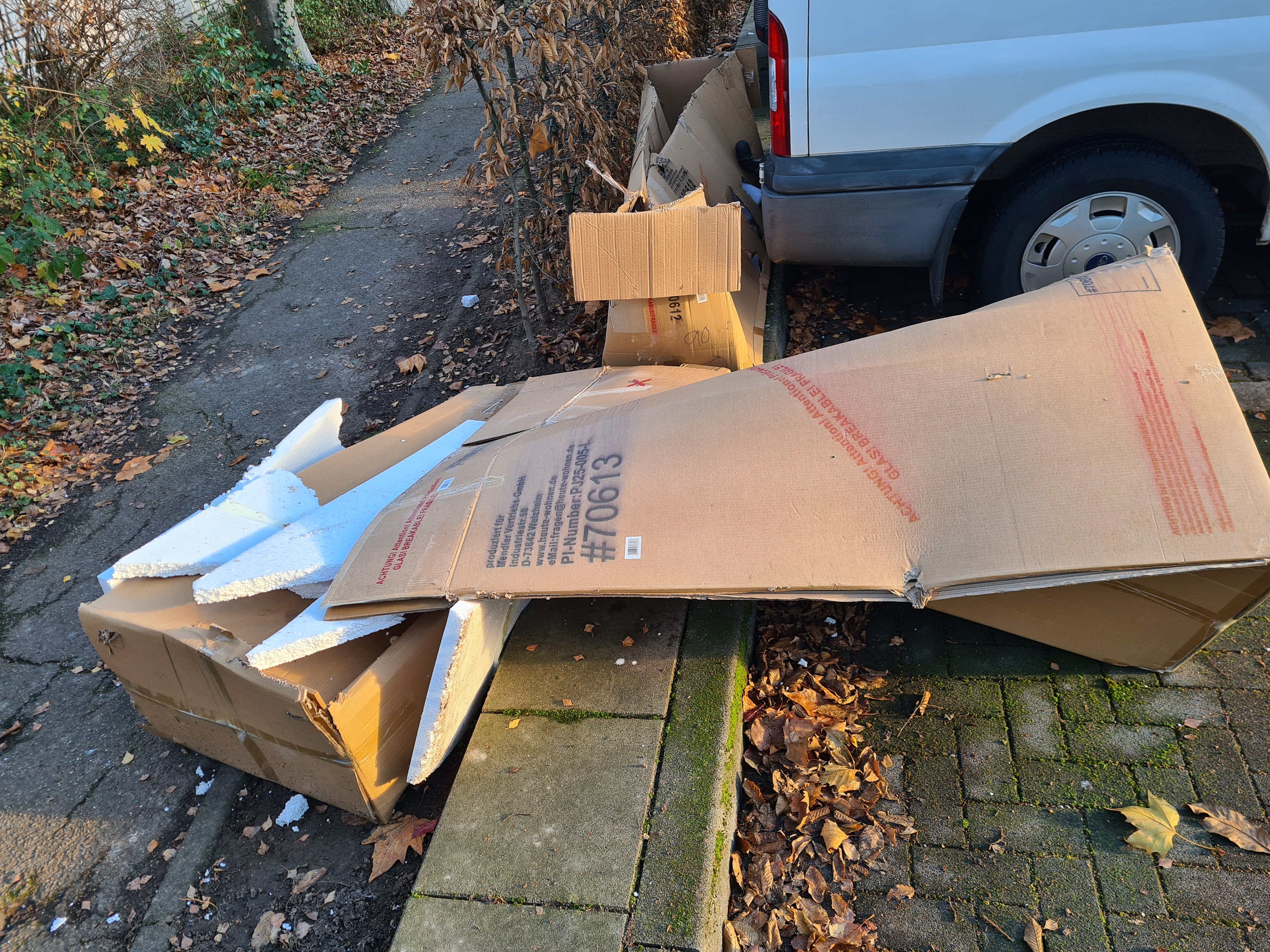 Große Pappkartons, Styroporplatten