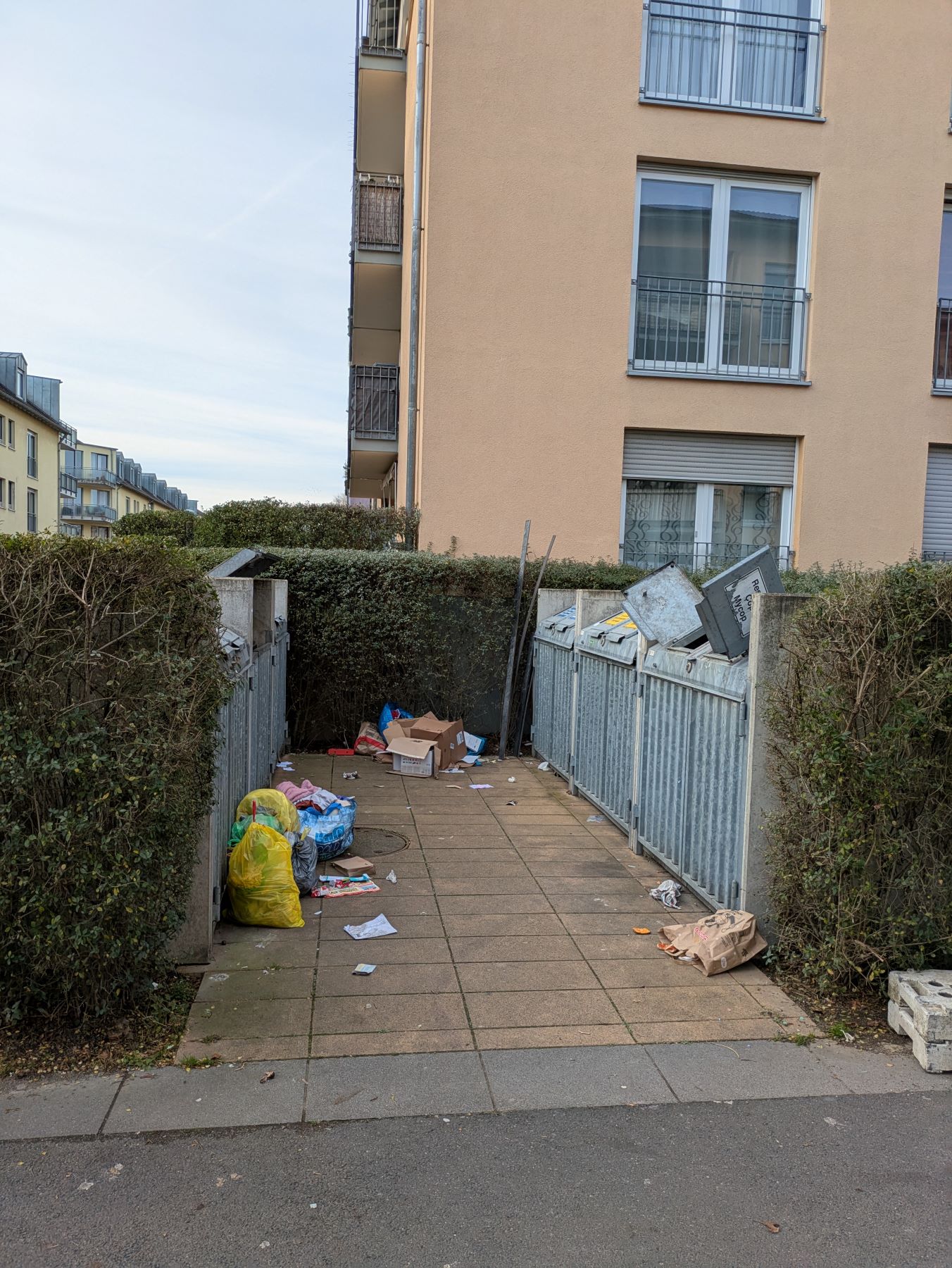 Leider sind die Bewohner nicht fähig den Müll in die Tonnen zu schmeißen. Meldungen bei der GAG bringen keinen Erfolg.