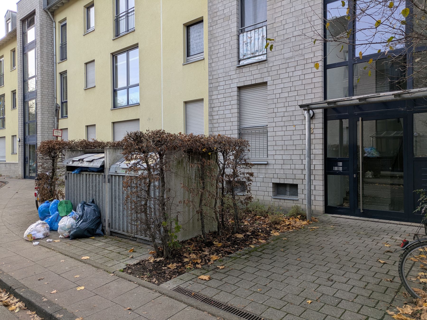 Leider sind die Bewohner nicht fähig den Müll in die Tonnen zu schmeißen. Meldungen bei der GAG bringen keinen Erfolg.