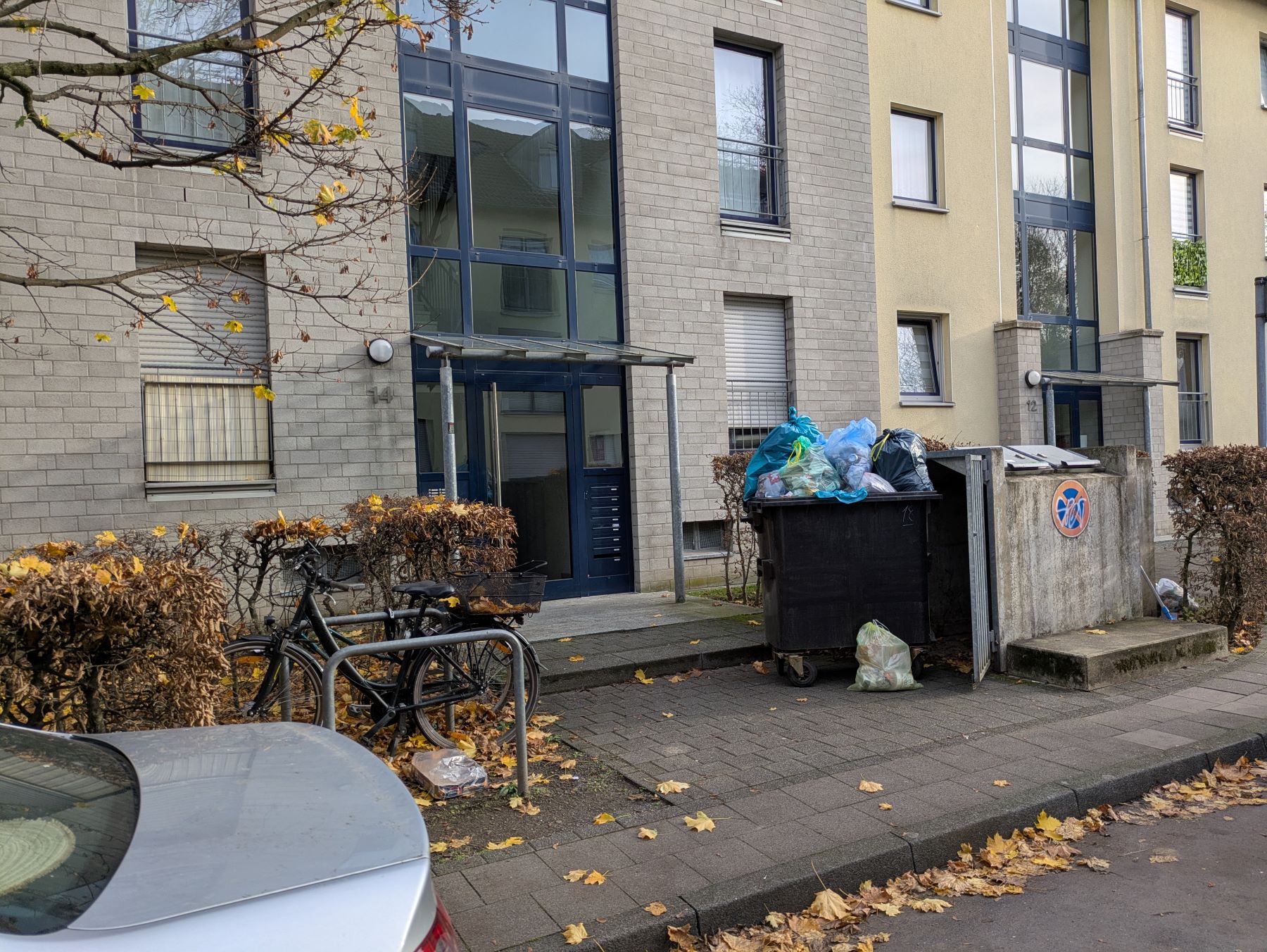 Leider sind die Bewohner nicht fähig den Müll in die Tonnen zu schmeißen. Meldungen bei der GAG bringen keinen Erfolg.