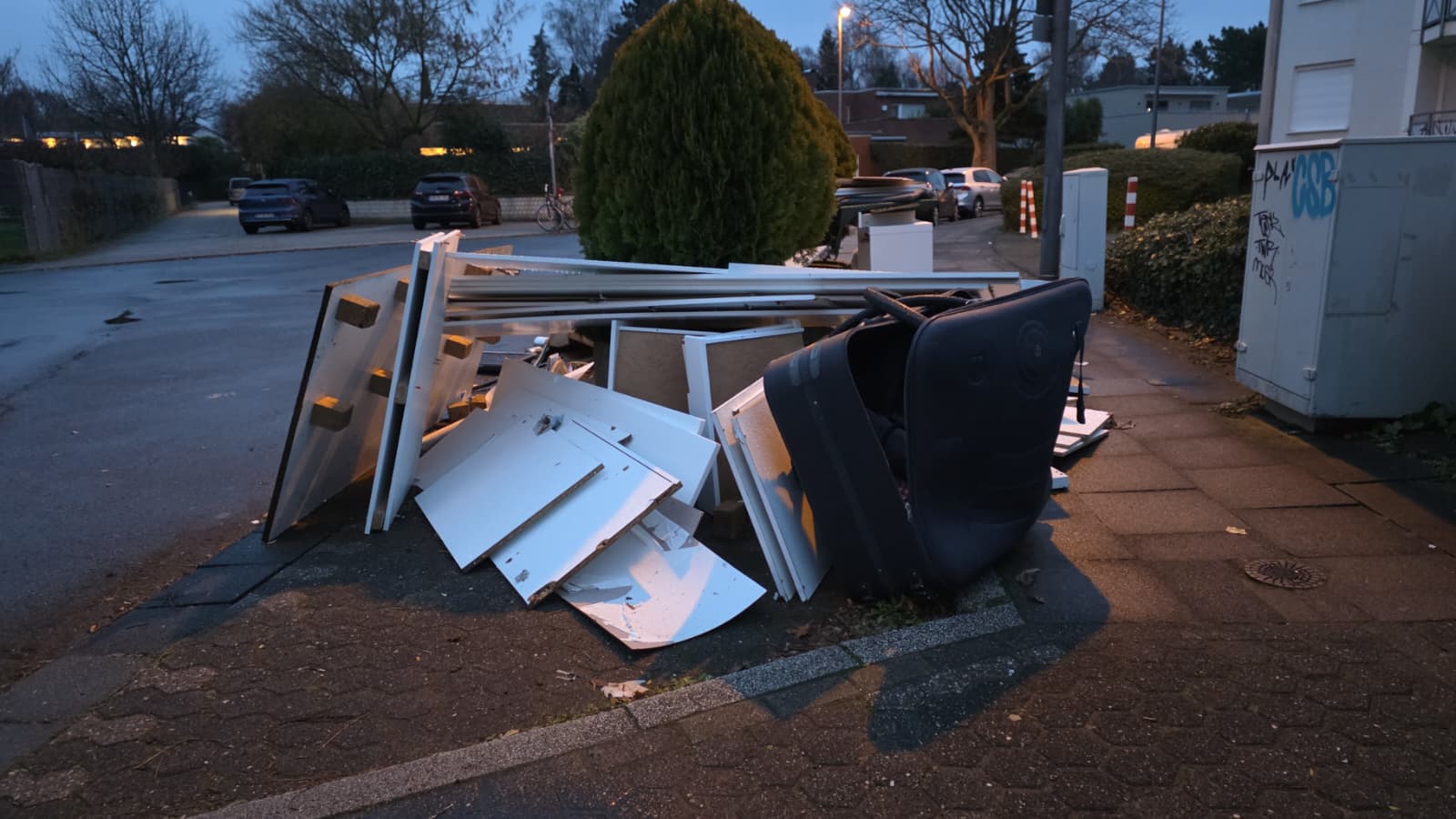 Inzwischen ist der Gehweg durch den Sperrmüll, der seit 1,5 Wochen stetig zunimmt, für Eltern mit Kinderwagen, Menschen mit Rollator, Rollstuhlfahrer usw nicht mehr nutzbar. Dies bedeutet eine Gefährdung dieser Personen, da man über die Fahrbahn ausweichen muss.