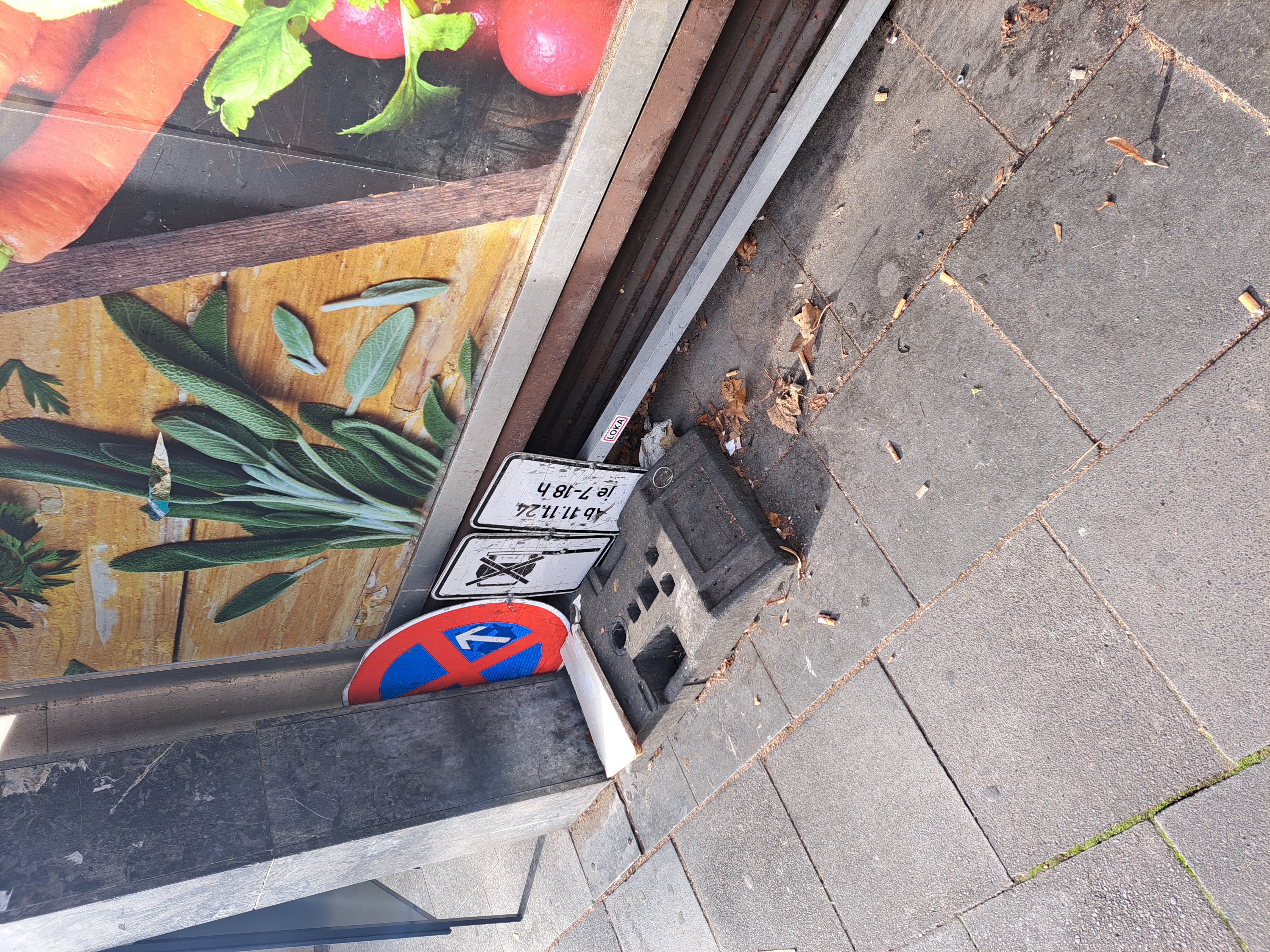 Das Schild liegt nun seit Monaten am Hinterausgang Rewe in der Brunnenstr. auf dem Bürgersteig. In Bearbeitung Straßenbaustellen Brunnenstr. 8 50969 Köln - Zollstock Deutschland Statusvermerke In Bearbeitung Mo., 24.11.2025 - 14:31