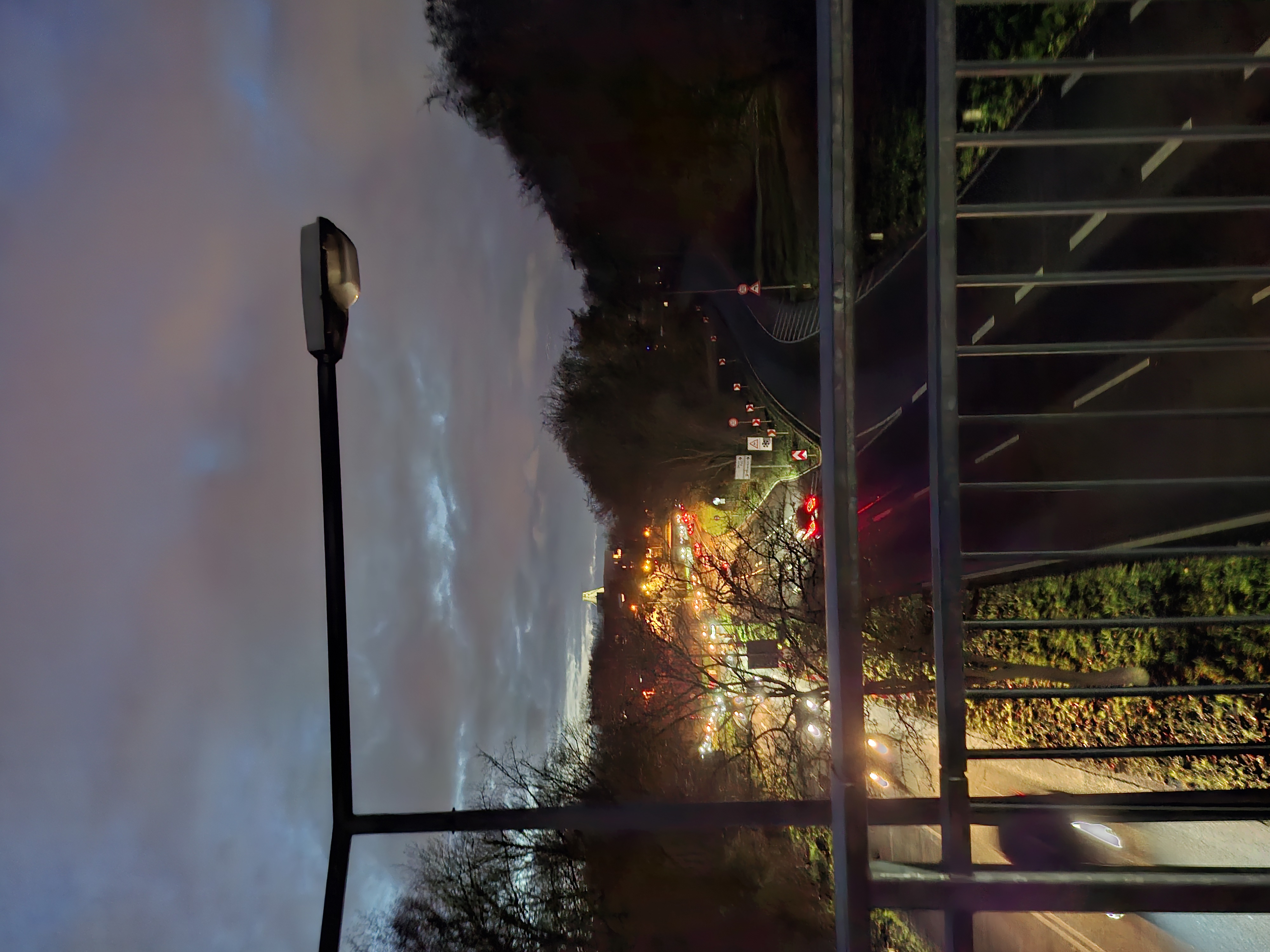 Laternen sind aus, auf der Brücke keine Beleuchtung. Weiter Lampen auch defekt