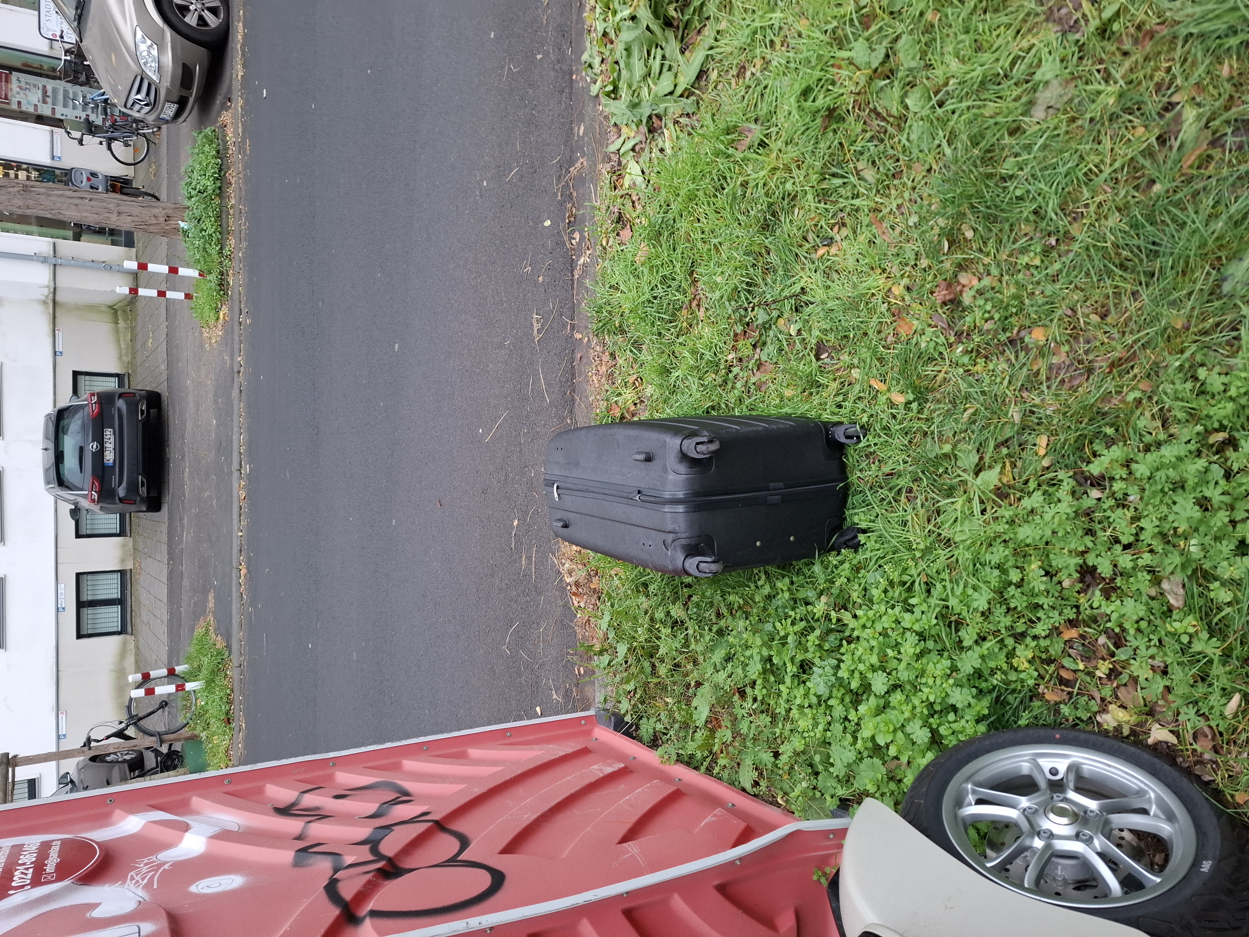 ein Koffer im Grünstreifen