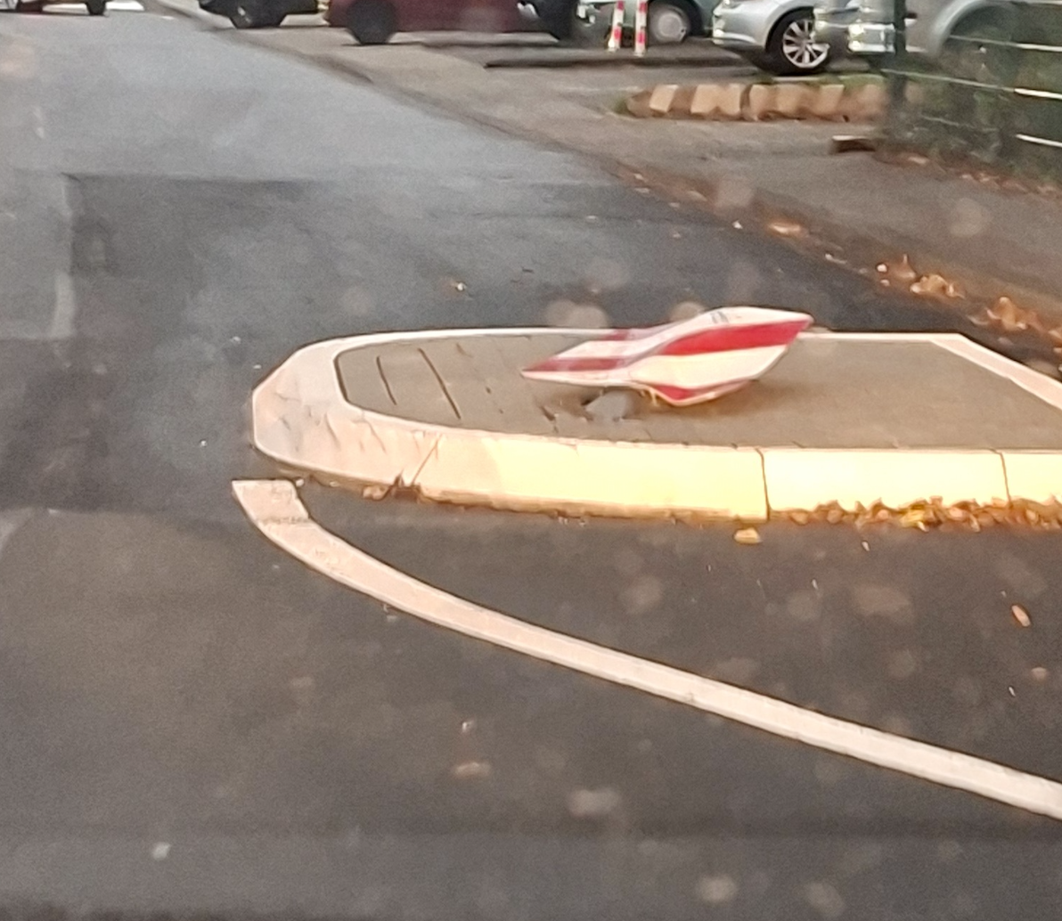 Pesch: Warnbake auf Verkehrsinsel umgefahren.
