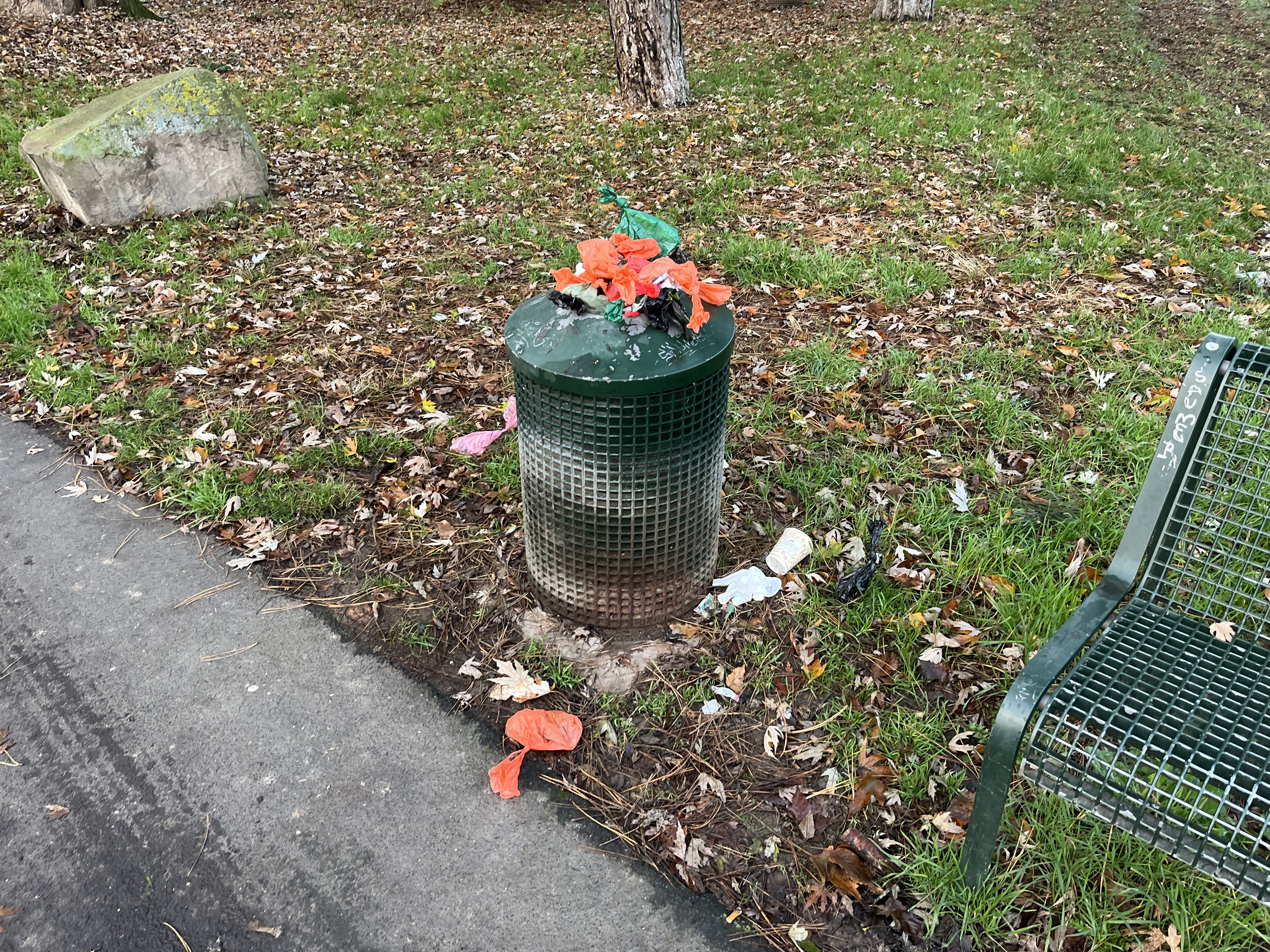 Der Mülleimer wurde seit über zwei Wochen nicht mehr geleert – wird sonst wöchentlich geleert – und quillt über