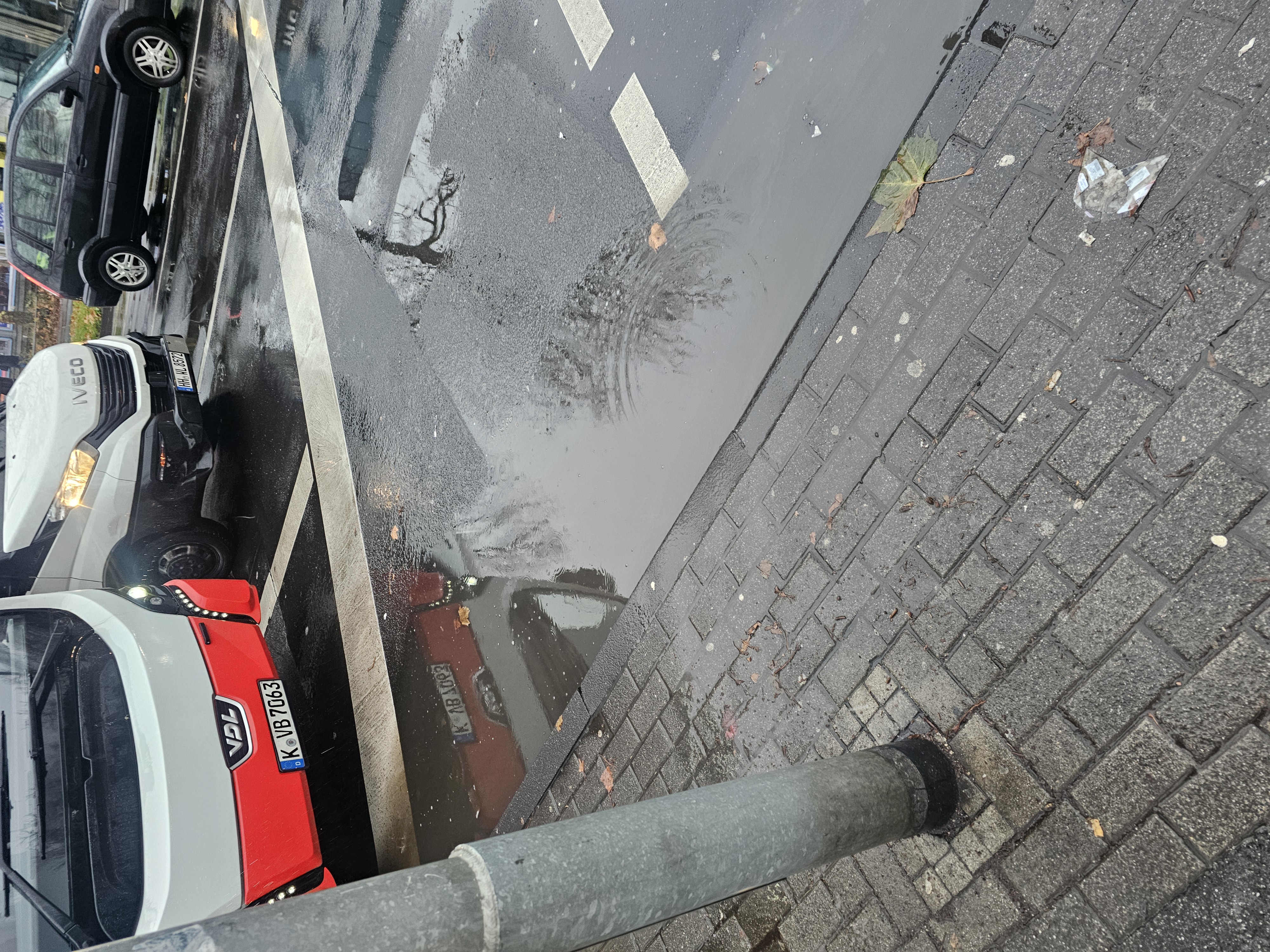 am 19.11.2025 wurde mir mitgeteilt, dass die Reinigung der gemeldeten Straßenabläufe an der Ampel bei der Bushaltestelle abgeschlossen sei (vgl. Anliegen #31605-2025 Gully verstopft) Dafür bedanke ich mich. Leider zeigt sich bereits nach leichtem Regen erneut dasselbe Problem. Trotz nur geringer Niederschläge steht dort wieder Wasser, vgl. Foto im Anhang