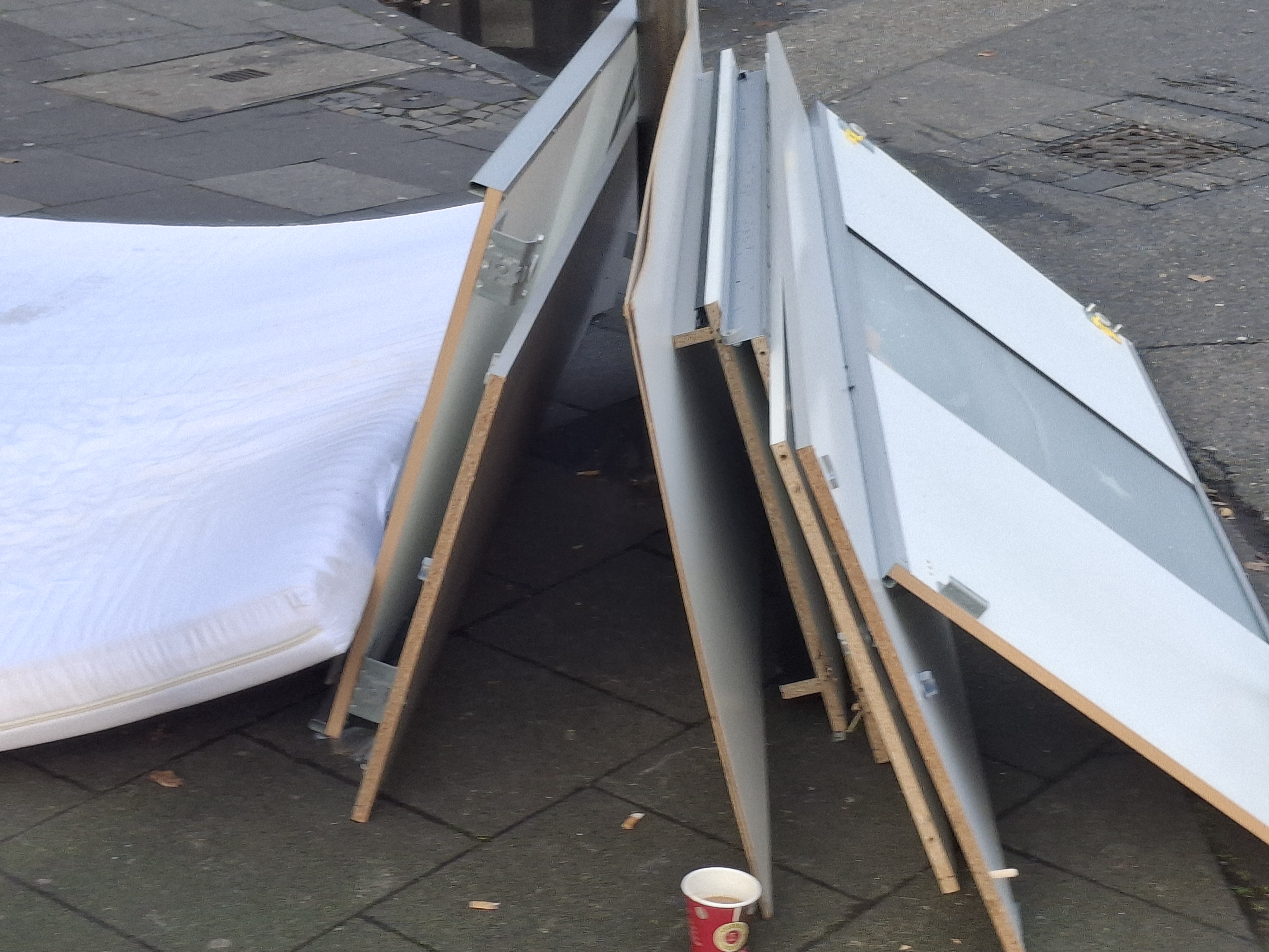 Gegenüber der Neusser Str.252, 50733 Köln, wurden weiße Teile und eine Matratze abgelegt.