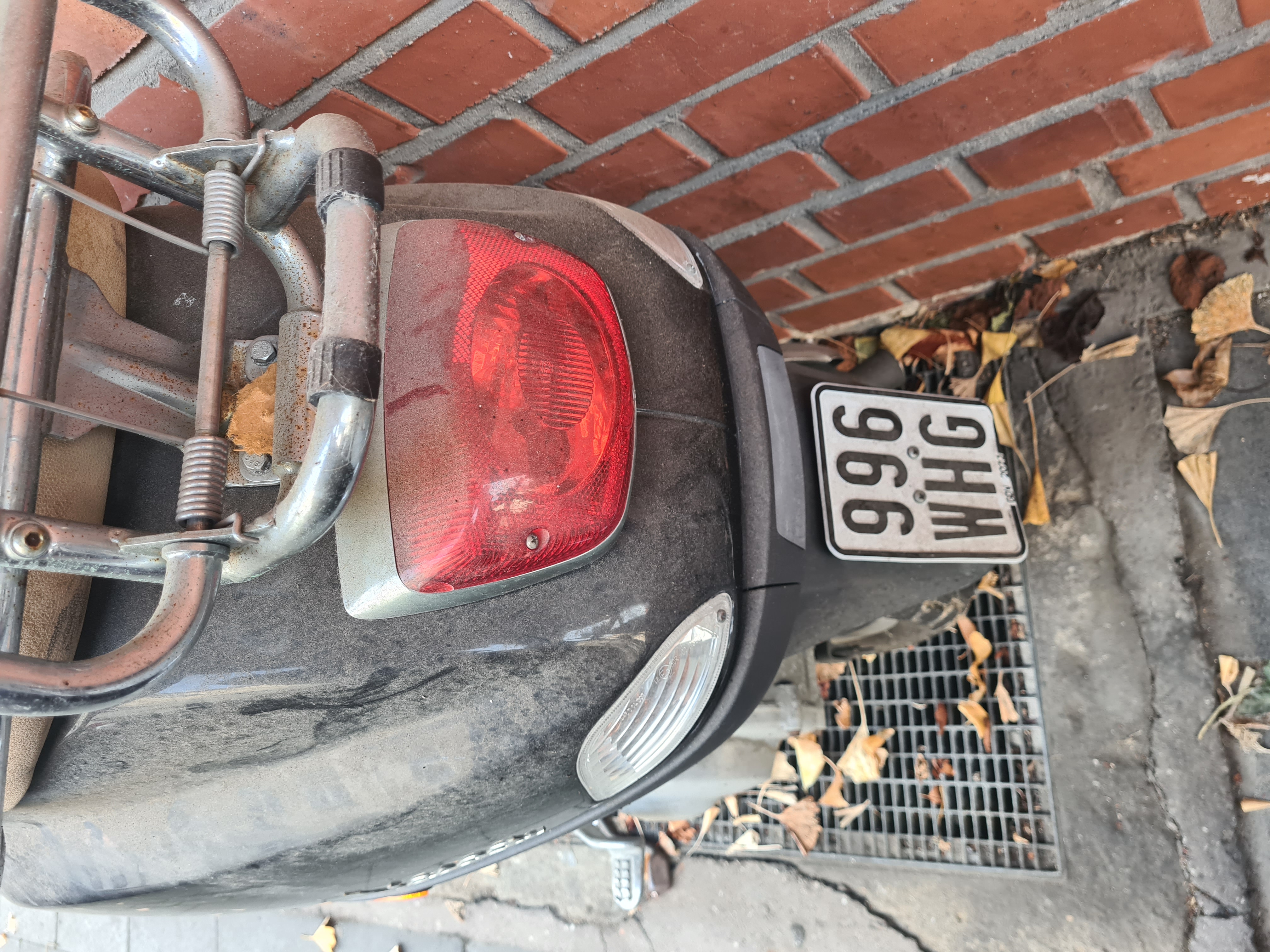Gegenüber der Ägidiusstr. 68 steht ein schwarze Motorroller mit einem Kennzeichen abgelaufen 2023 .Der Roller ist in einem schlechten Zustand.