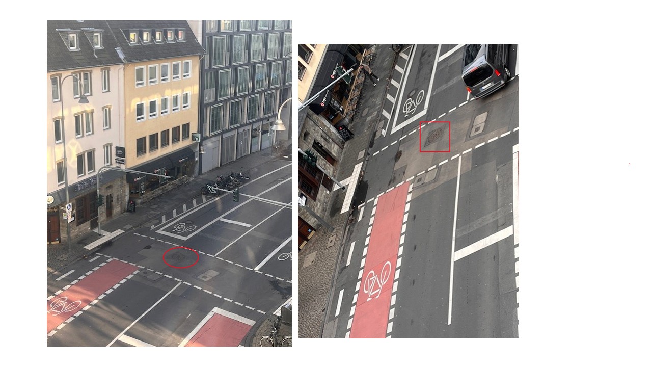 Nachdem bei Bauarbeiten der Kanaldeckel geöffnet wurde, liegt er nun nicht mehr richtig auf und ist lose. Dadurch entsteht nicht nur eine erhebliche Lärmbelästigung, wenn Fahrzeuge über den Deckel fahren, sondern es besteht auch eine Gefahr für Fußgänger und Radfahrer, da sich direkt daneben eine Fußgängerampel befindet. Perspektivisch könnte es zu noch schwereren Vorfällen kommen, wenn sich der Deckel weiter löst.