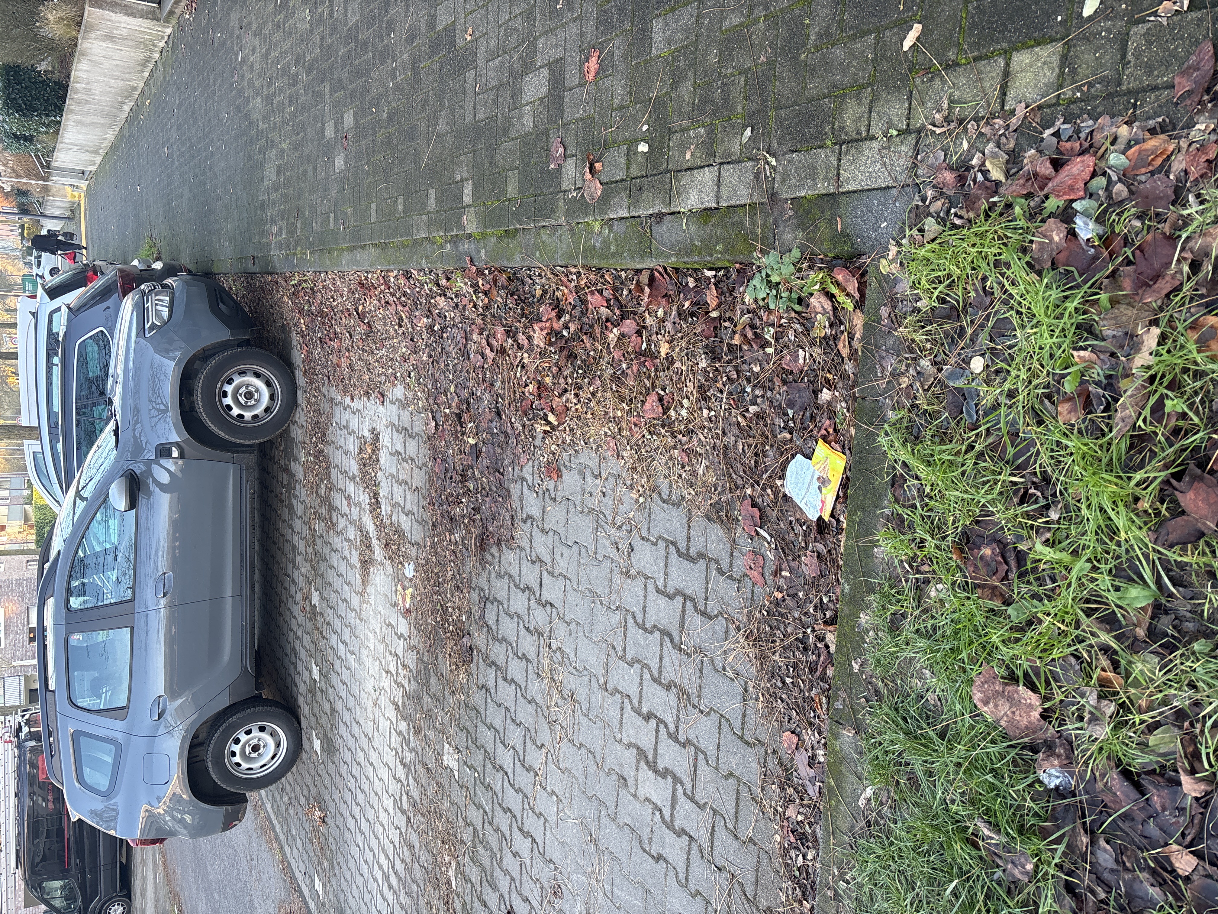 Laubansammlung auf den ganzen Parkplatz