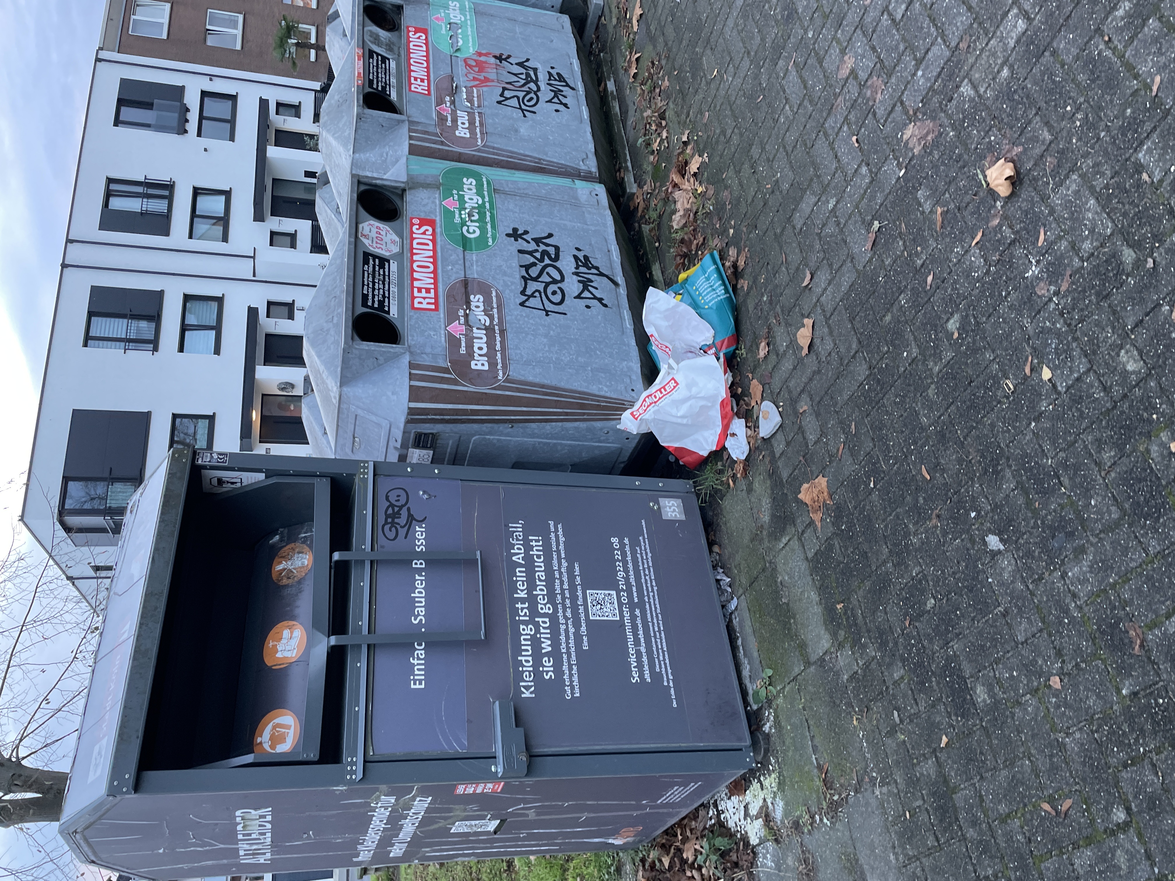 Vor dem Altkleidercontainer liegt leider mal wieder Müll! Vielen Dank