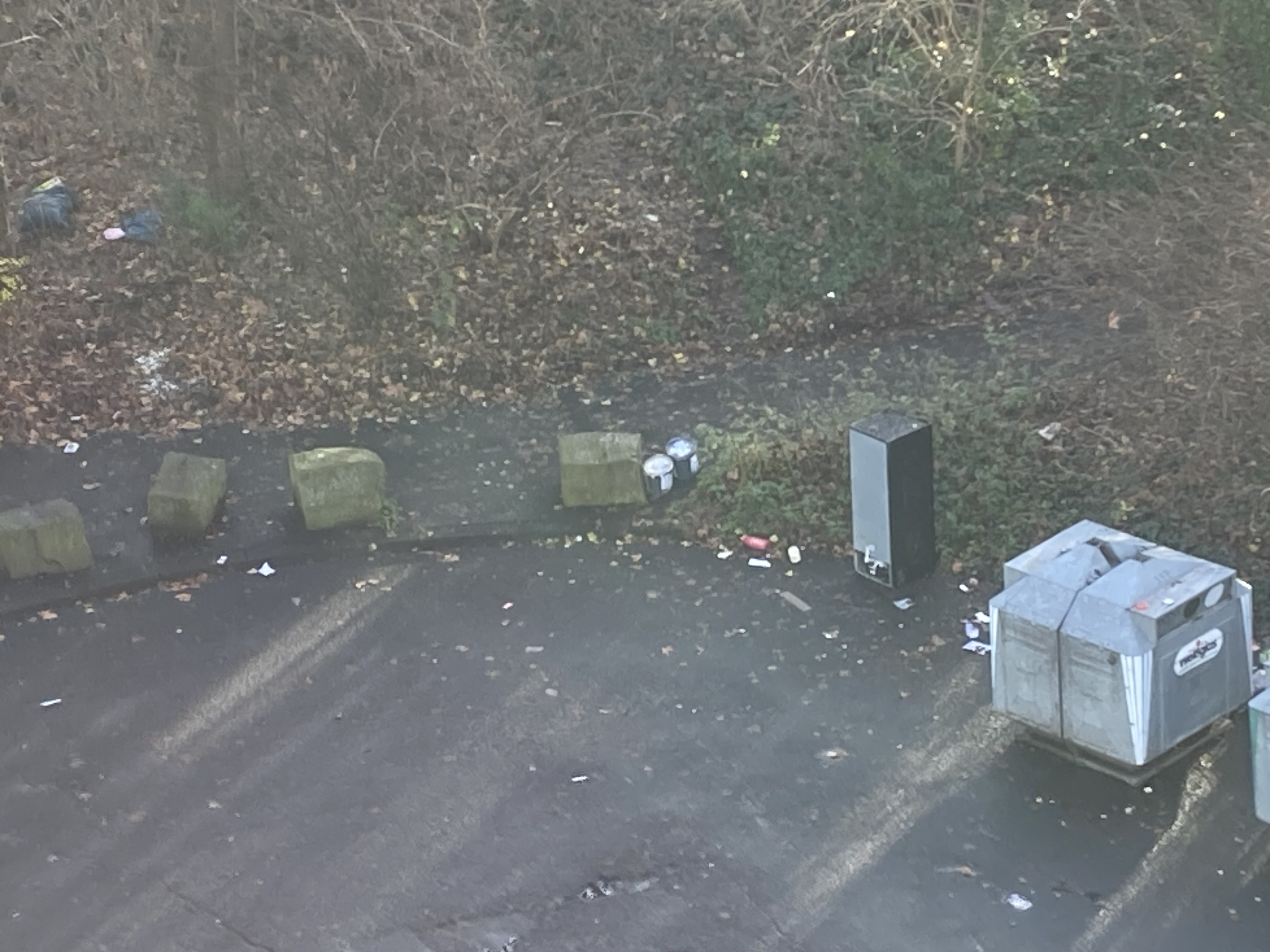 Säcke mit Müll in den grünen Anlagen sowie Farbeimer und Kühlschrank wurden hier abgeworfen