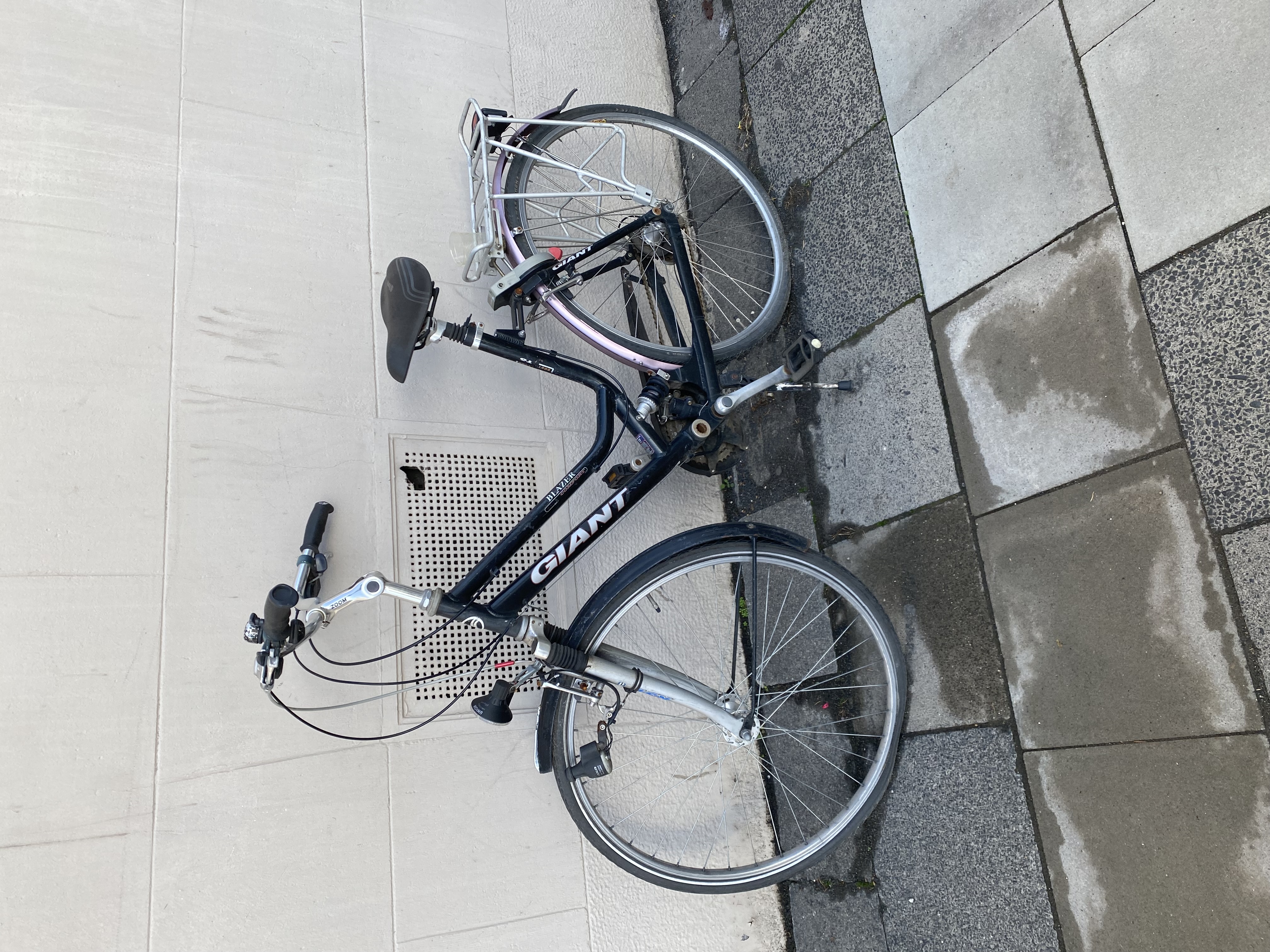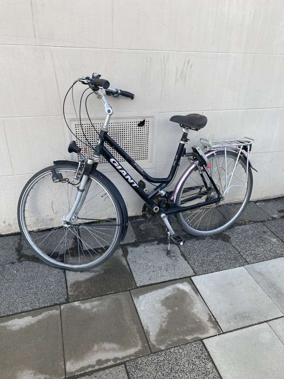 Hier steht ein Schrottfahrrad vor der Hausnummer 102