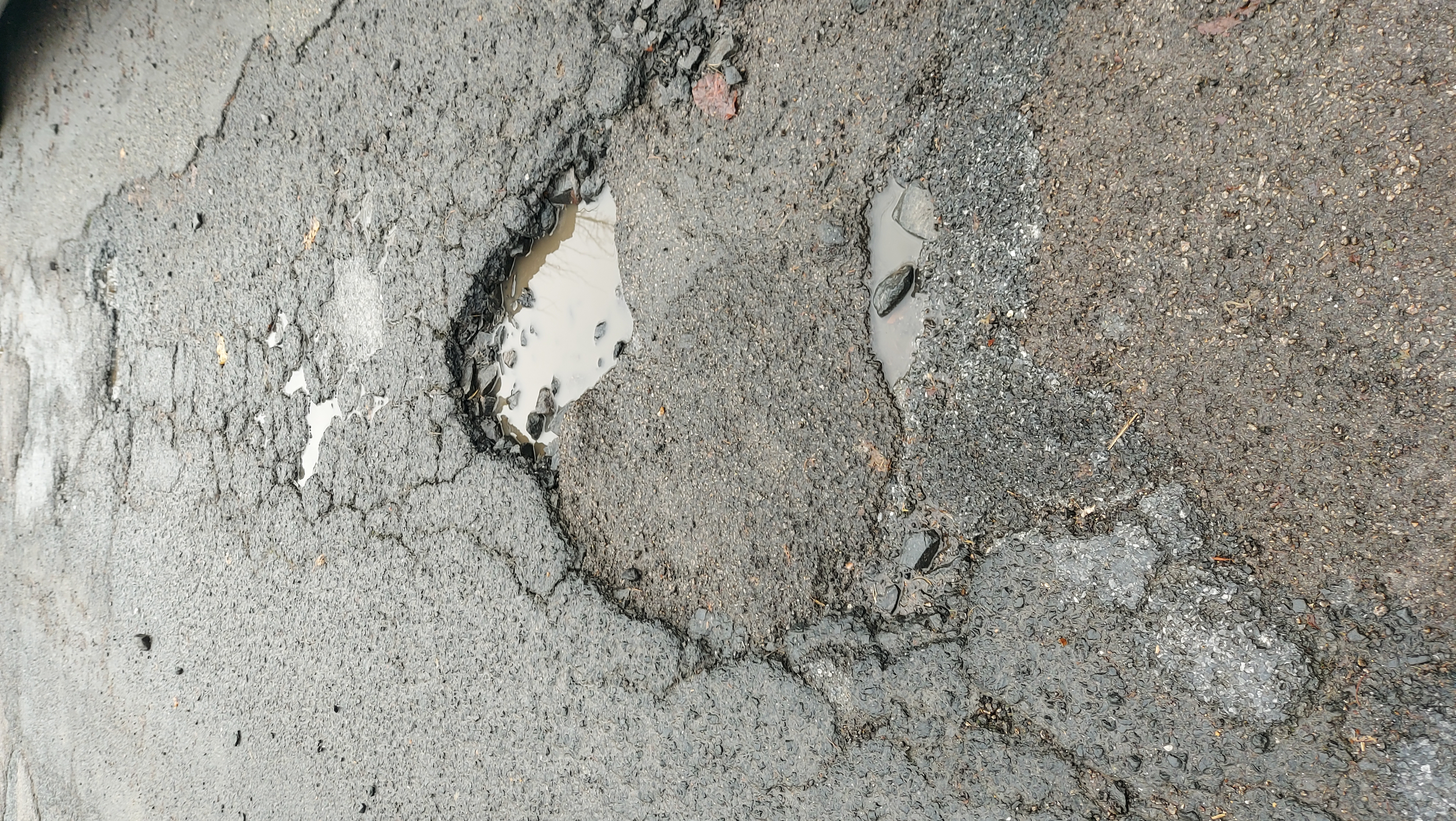 Großes Loch im Asphalt- Gefährdung für Radfahrer